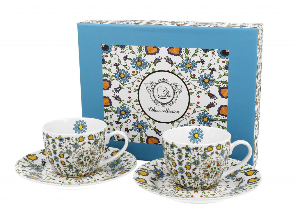 ETNO BLUE Šálek s podšálkem 90 ml - set 2 ks
