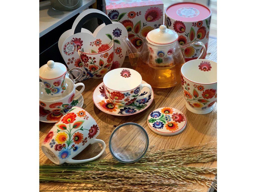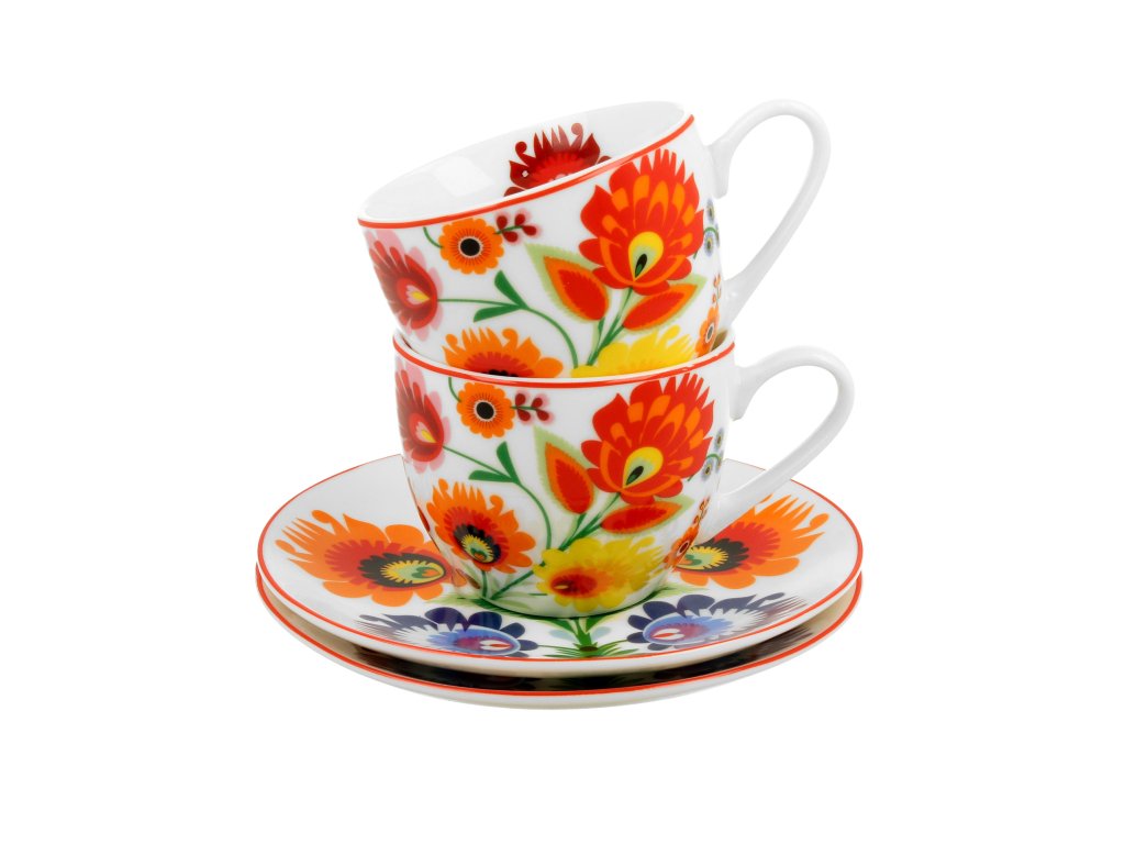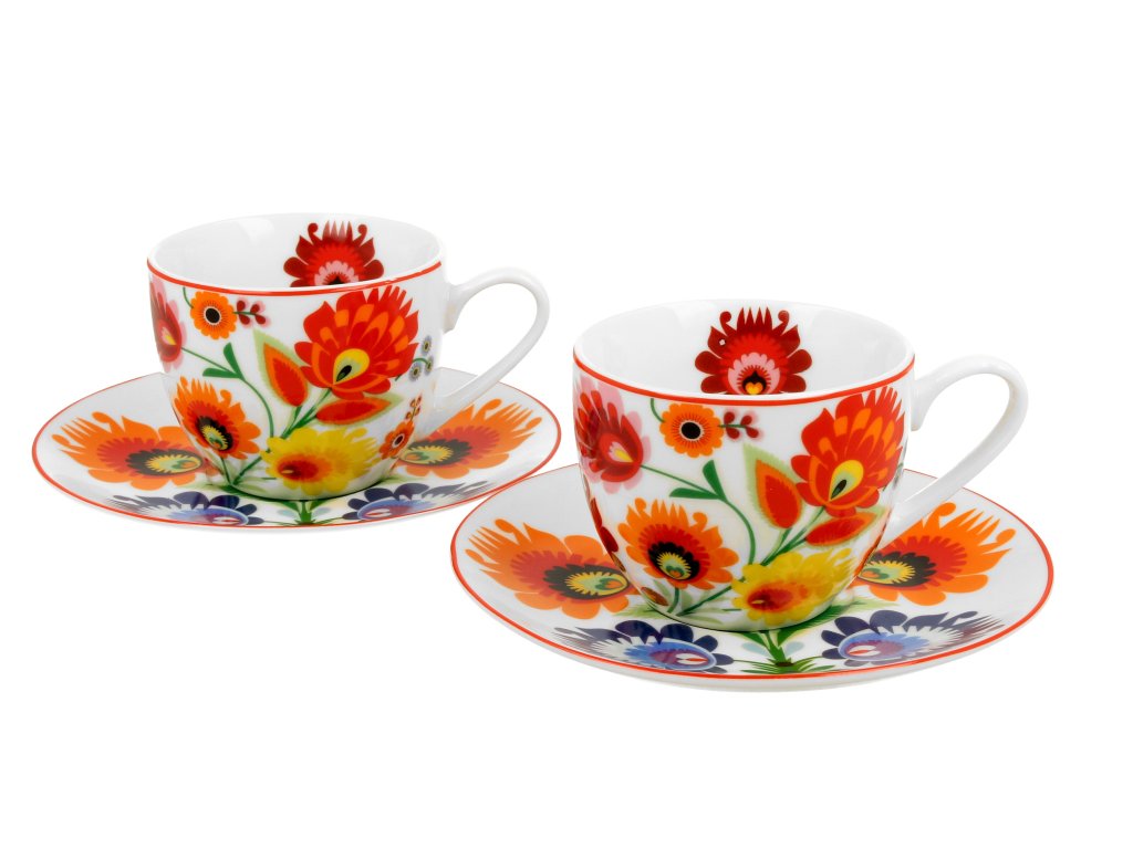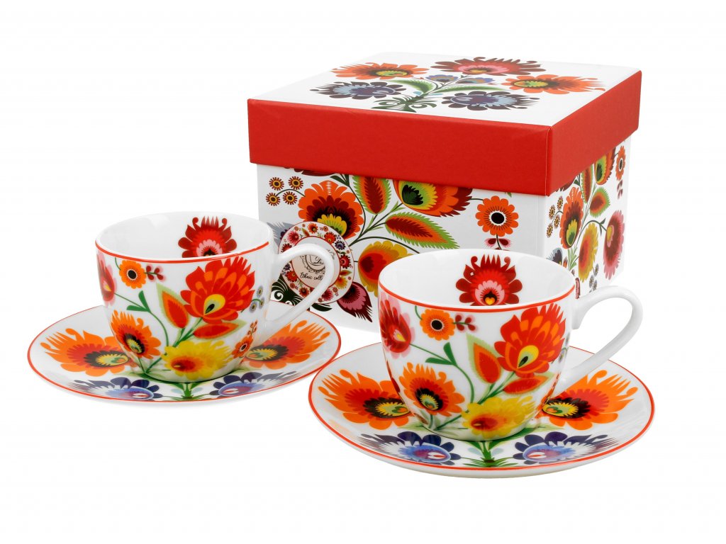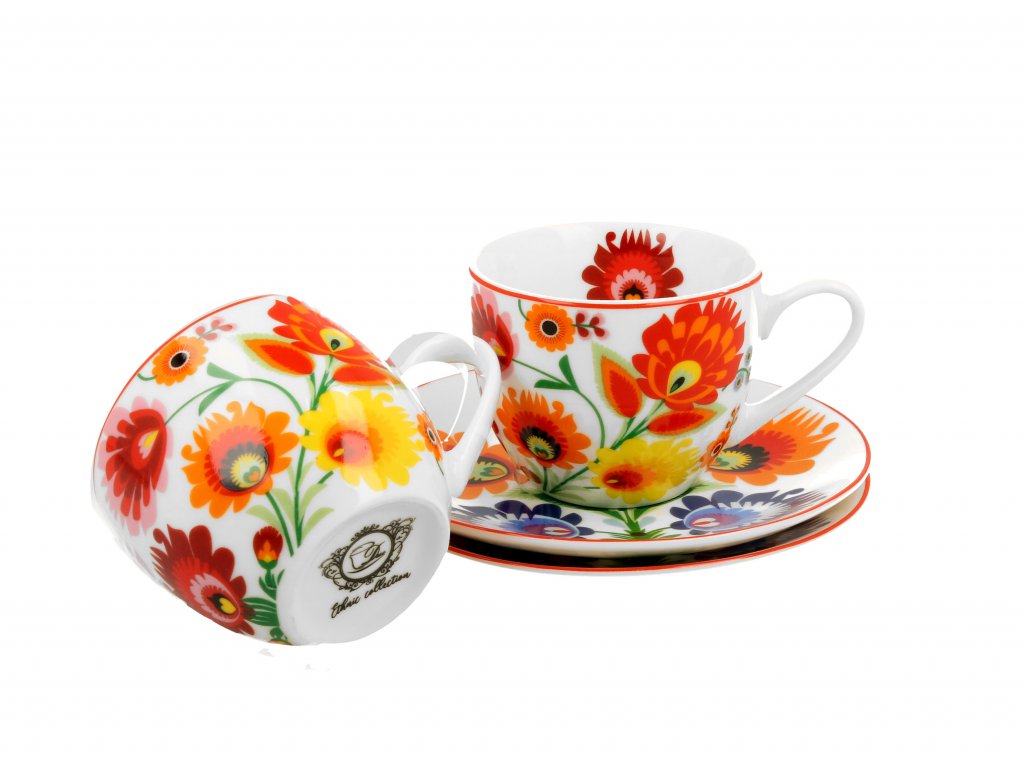 LOWICZ je porcelánová souprava presso šálků s podšálkem o objemu 90 ml z kolekce Etno, s výraznou tradiční regionální malbou, vyrobená z úžasného New Bone China (jemného kostního porcelánu), který se vyznačuje krémovo-bílou barvou (charakteristickou pro jemný kostní porcelán) s jemným leskem a výbornou trvanlivostí.