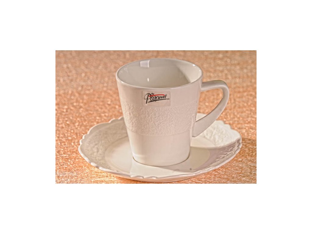 Šálek s podšálkem o objemu 150 ml v bílé barvě s krásnou lesklou a pevnou glazurou a zlatým reliéfem od špičkové české značky Paramit.