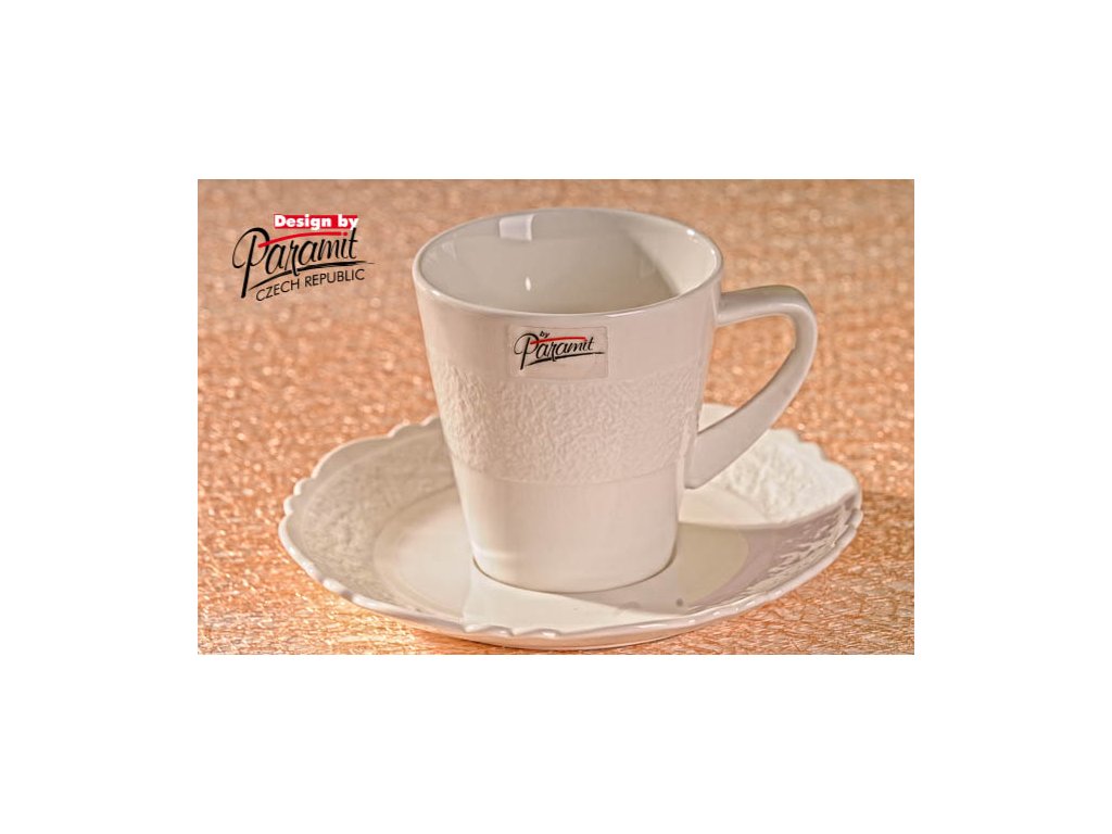 Porcelánový šálek s podšálkem Krajka bílé barvy a objemu 150 ml od české značky Paramit.
