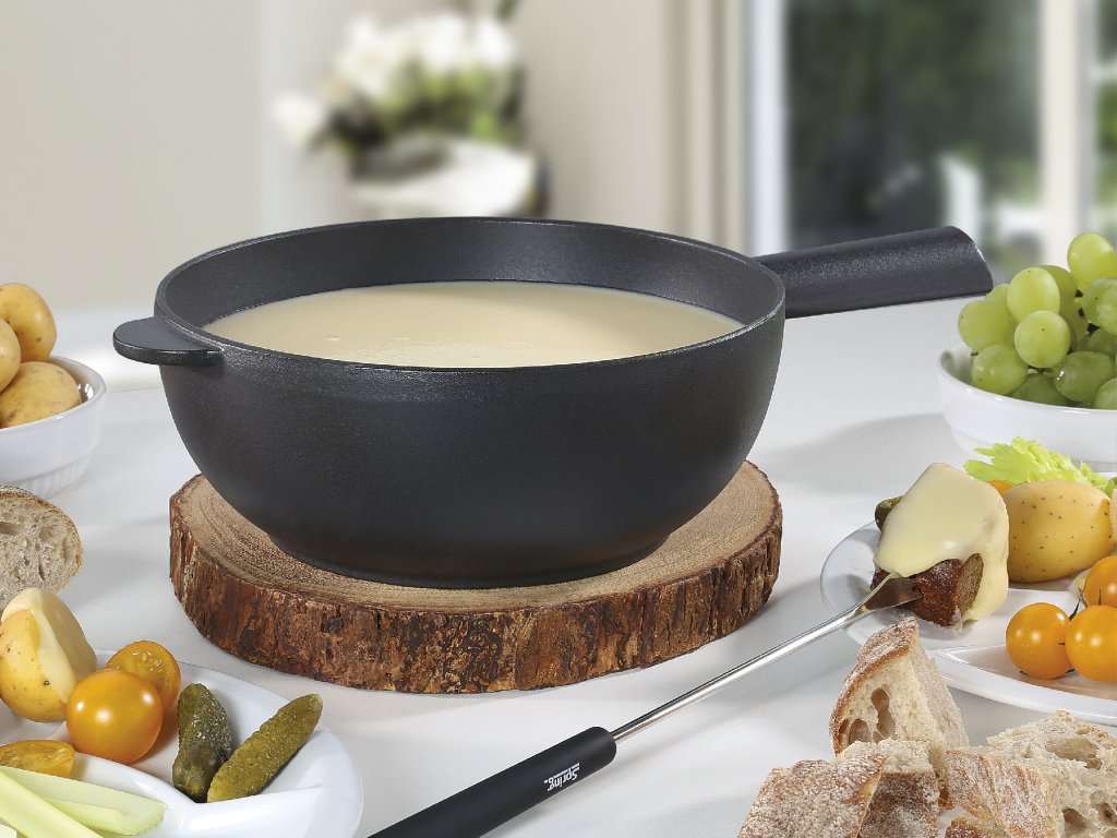 Caquelon je vyrobený ze smaltované litiny pro optimální rozložení tepla, vynikající akumulaci tepla a odolnost vůči vysokým teplotám.