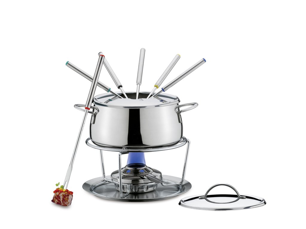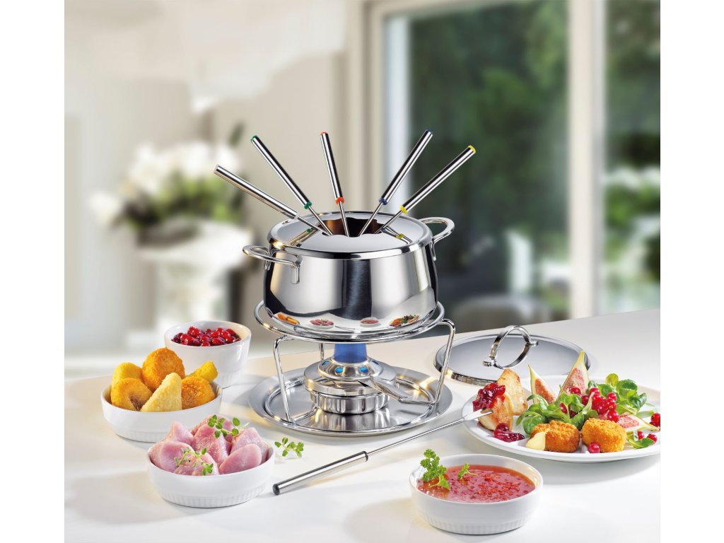 Všechny komponenty jsou vyrobeny z leštěné nerezové oceli. Snadno se udržuje a je odolný. Fondue miska je vhodná pro plynové i elektrické sporáky.