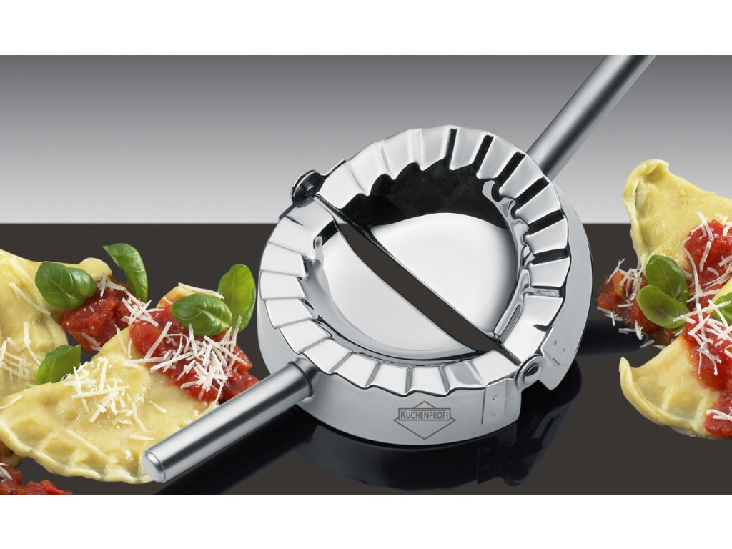 Zaklápěcí nerezový lis na přípravu těstovin ravioli o průměru 12 cm od špičkové německé značky Küchenprofi.