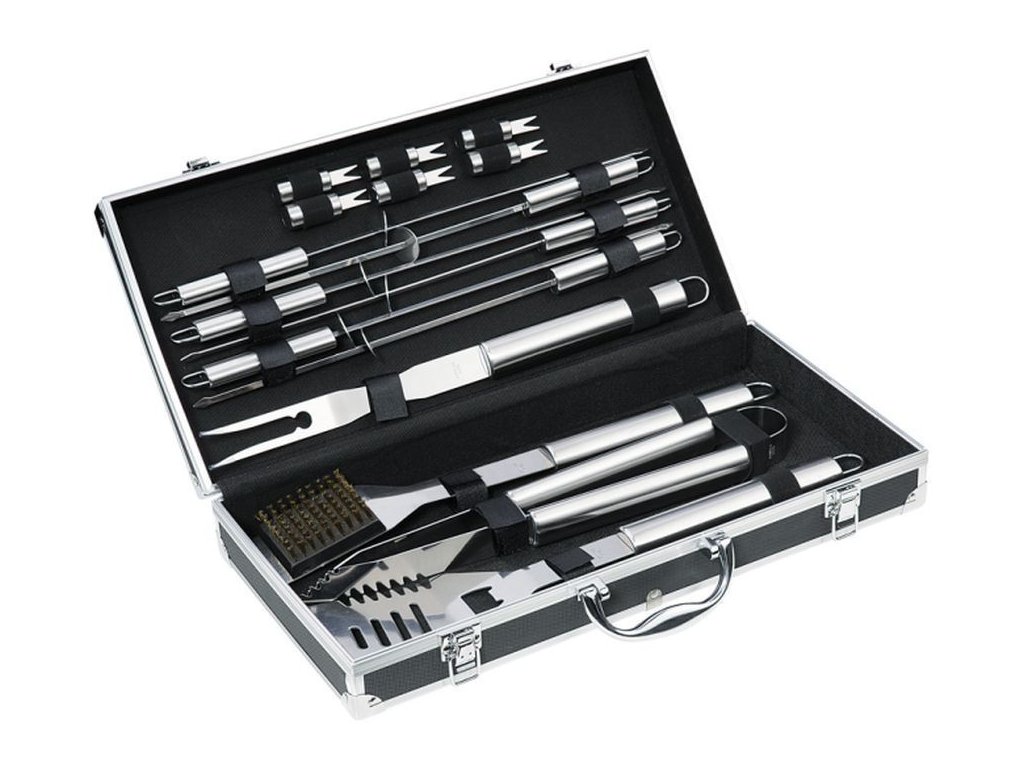 Sada grilovacího náčiní 16 dílů z nerezu v lehkém hliníkovém černém kufru