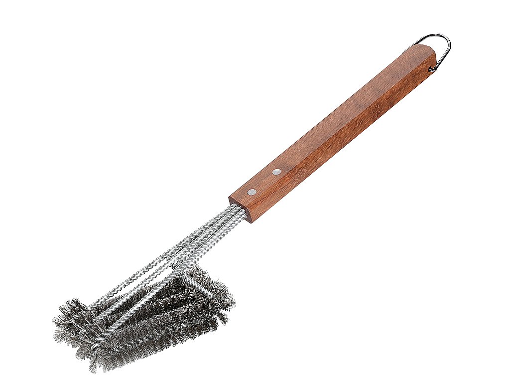 Tři dlouhé ocelové kartáče si hravě poradí s připáleným tukem a vlákny masa. Grilovací kartáče jsou ideální pro čištění grilovacích roštů z odolné litiny nebo nerezové oceli. Dlouhá rukojeť z palisandrového dřeva pohodlně padne do ruky. Dodává kartáči solidní váhu, umožňuje vyvinout dostatečný tlak na grilovací rošt a dosáhnout i do posledního rohu.