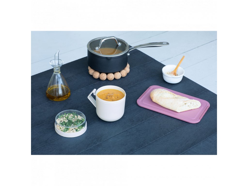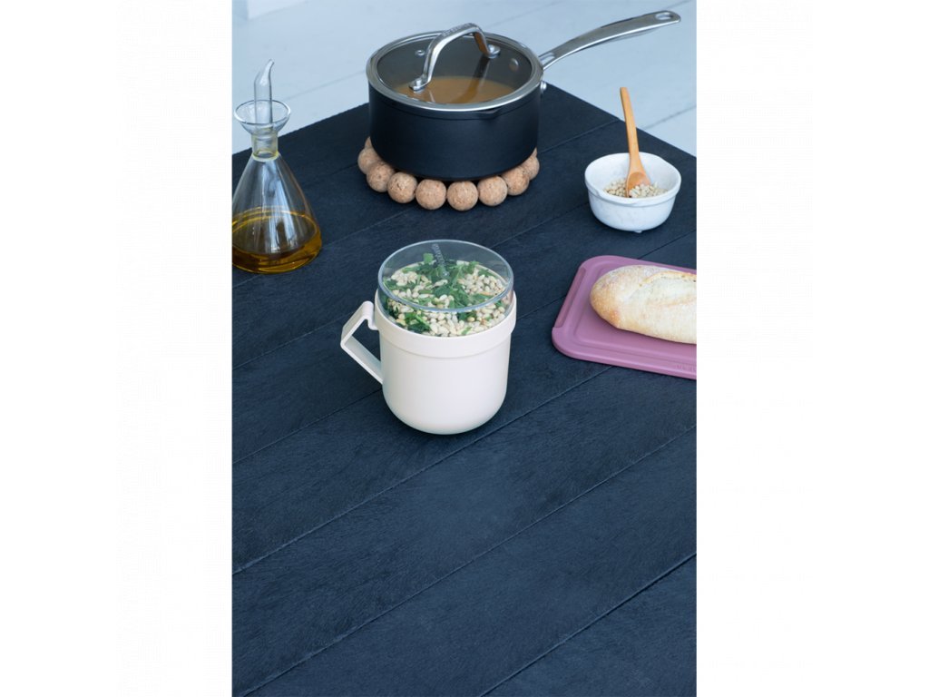 Světle šedý cestovní hrnek na polévku je praktický s velkým objemem až 600 ml. Víko obsahuje šroubovací nádobu na přísady navíc, jako jsou třeba krutony, o objemu 180 ml. Hrnek má ucho, abyste se nepopálili, ale slouží i pro snadné sušení dnem vzhůru. Je multifunkční a vhodný do myčky, mikrovlnné trouby nebo mrazáku. Materiál je odolný plast s dlouhou životností (záruka 5 let).