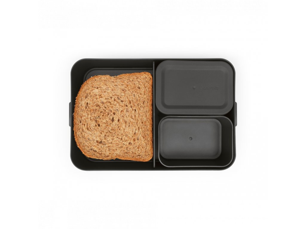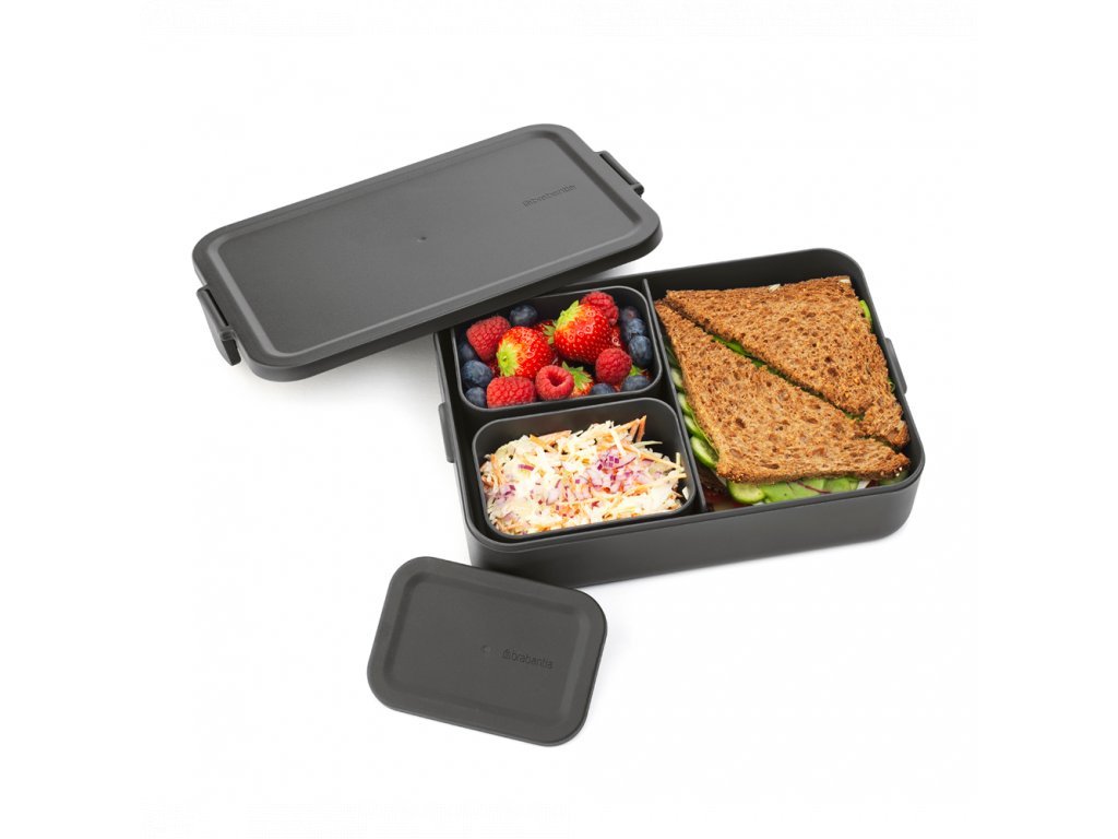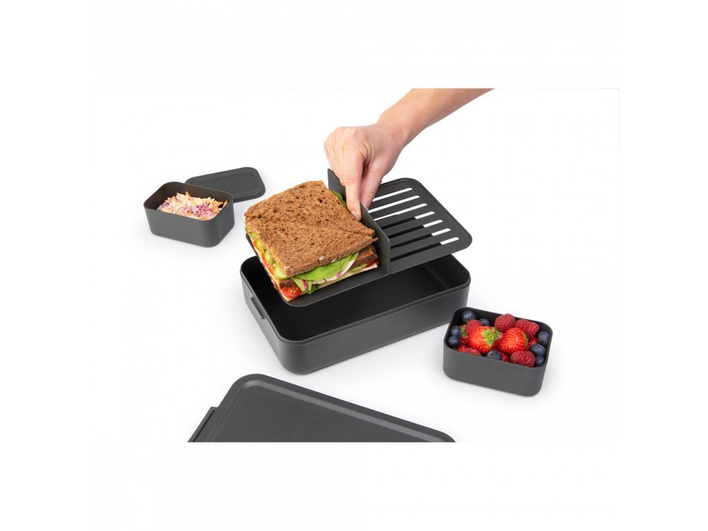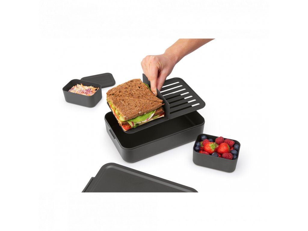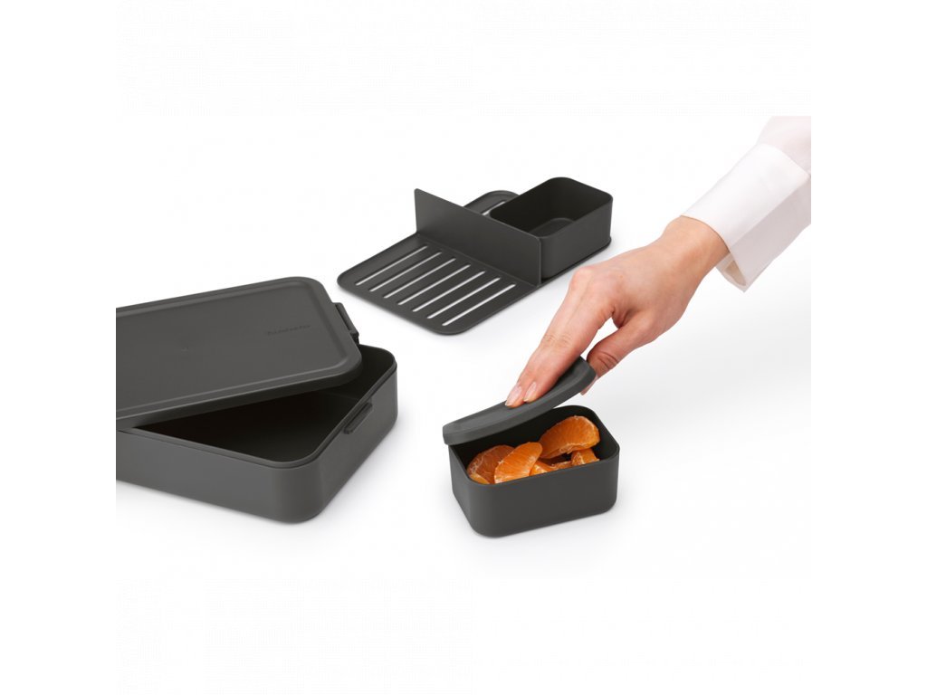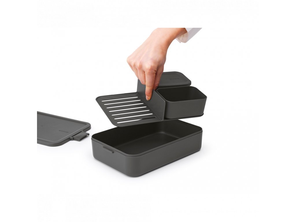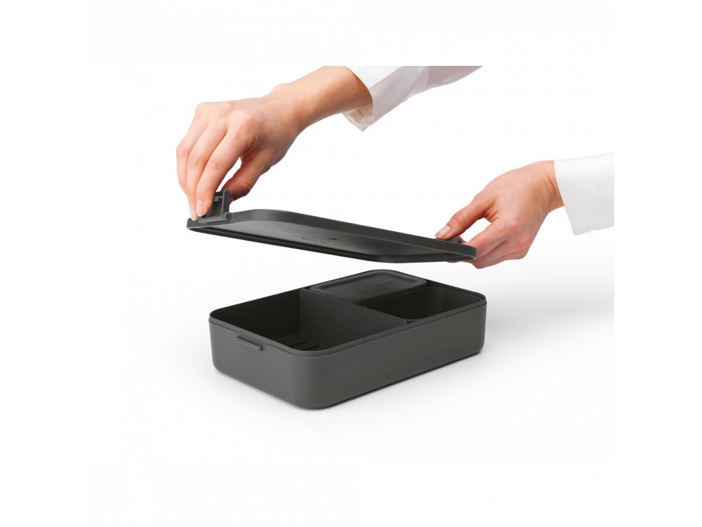 MAKE&TAKE MEDIUM Tmavě šedý praktický obědový box z kolekce MAKE&TAKE o rozměrech 20x13,5x5,5 cm, objemu až 1,1 l od špičkové holandské značky Brabantia.