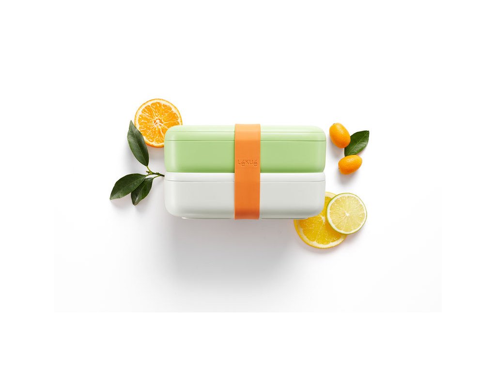 Svačinový box LUNCH BOX TO GO 2x500 ml - zeleno-bílý