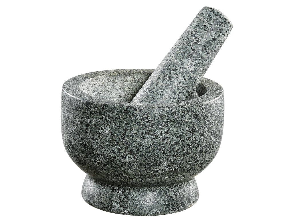 Součástí žulového hmoždíře je i palička ze stejného materiálu. Je vhodný na drcení koření a na výrobu pesta. Robustní palička rozdrtí byliny a koření rychle a bez vynaložení úsilí.