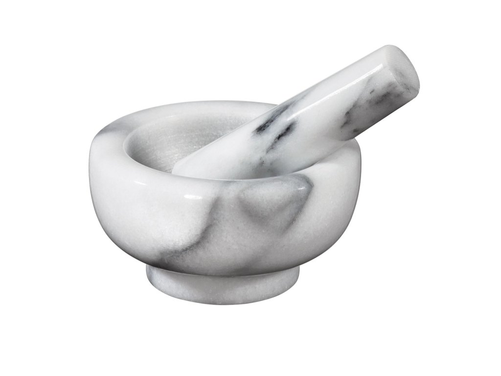 Bílý mramorový hmoždíř o průměru 9,7 cm a výšce 4,7 cm od německé značky Küchenprofi.