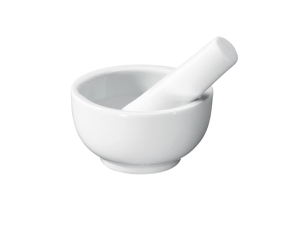Porcelánový bílý hmoždíř o průměru 8,5 cm od špičkové německé značky Küchenprofi.