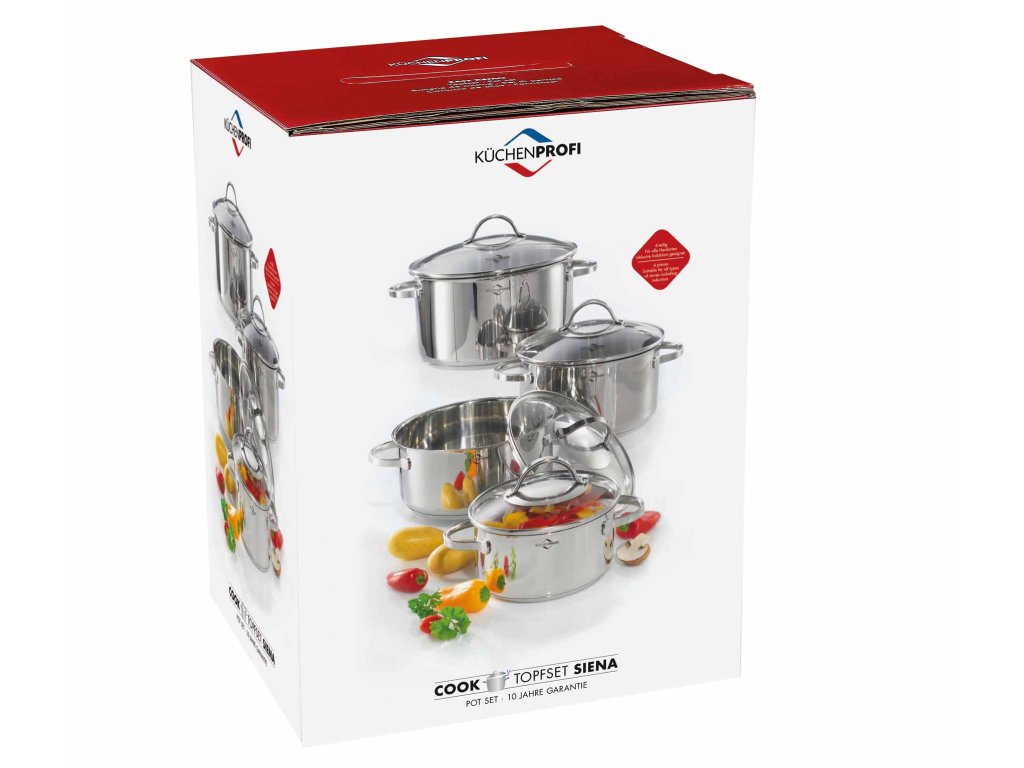 Sada obsahuje 4 hrnce z nerezové oceli se skleněnými poklicemi. Hrnce mají extra silné vícevrstvé dno. Tím se dobře, rychle a rovnoměrně přenáší teplo. Vaše maso je dobře uvařené a zelenina zůstává křupavá. Hrnce jsou vybaveny praktickými vnitřními ryskami. Sada je vhodná pro všechny typy sporáků včetně indukčních a je vhodná do myčky nádobí. Na tyto hrnce je záruka 10 let z důvodu vysoké kvality nádobí, takže máte spoustu času rozmazlovat svou rodinu a přátele vaším kuchařským uměním.