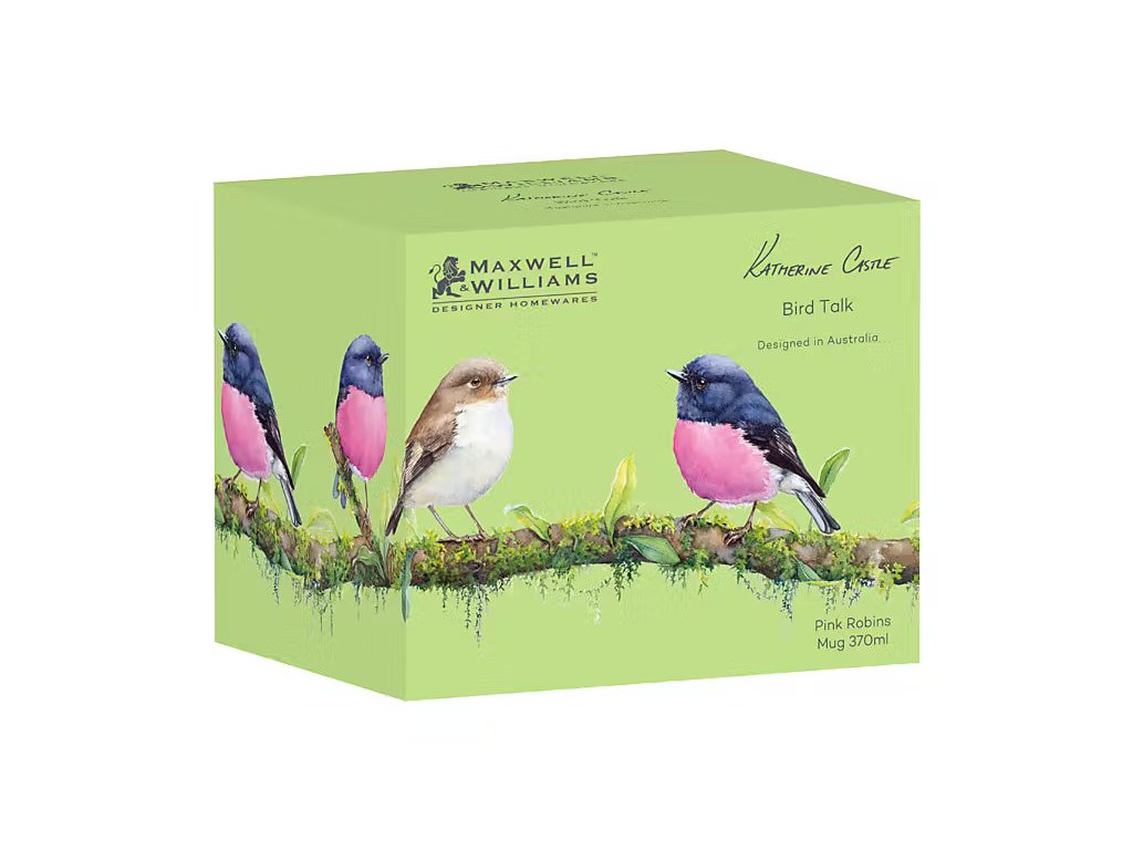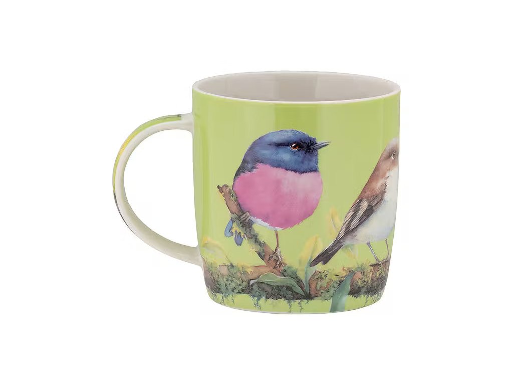 Úžasný hrnek na čaj, kávu i čokoládu o objemu 370 ml s originálním designem Lejsčíka růžovobřichého z pera australské umělkyně CATHERINE CASTLE z kolekce porcelánu BIRD TALK, který se vyznačuje originálním designem, typickými bohatými barvami a jemnými detaily. Tento krásný hrnek je vyroben z kvalitního porcelánu s jemně zaobleným tvarem.