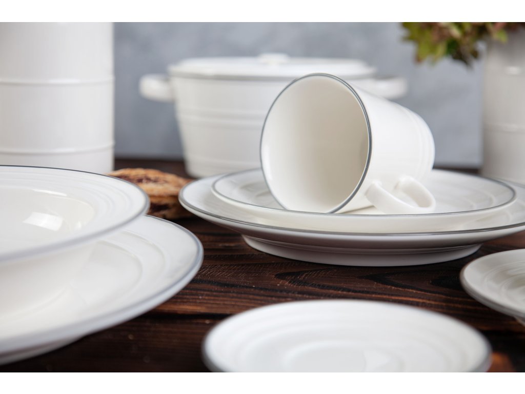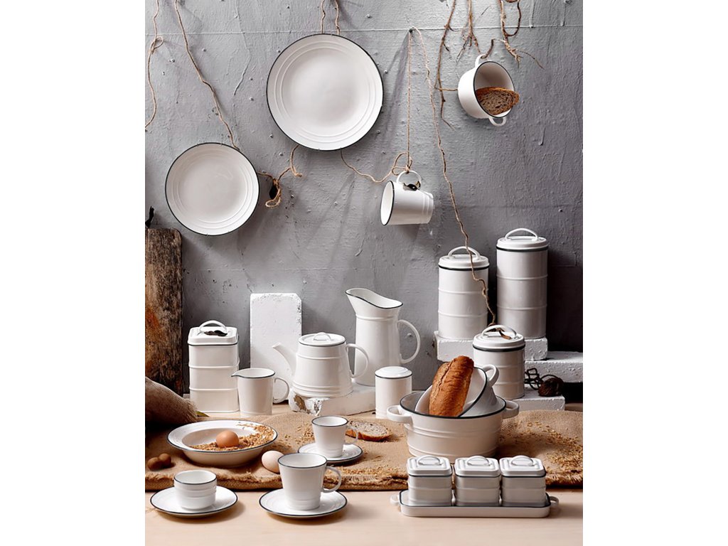 Kolekce porcelánu NOSTALGIE je designery české značky by inspire navržena v duchu návratu zpět v čase. Připomíná smaltované nádobí babiček, přičemž porcelán, ze kterého je vyroben mu dodává smetanový nádech a působí tak věrohodně a přitom vlídně. Jemný šedý proužek okolo jen zdůrazňuje křehkost a evokuje v nás retro tvar kovového nádobí.