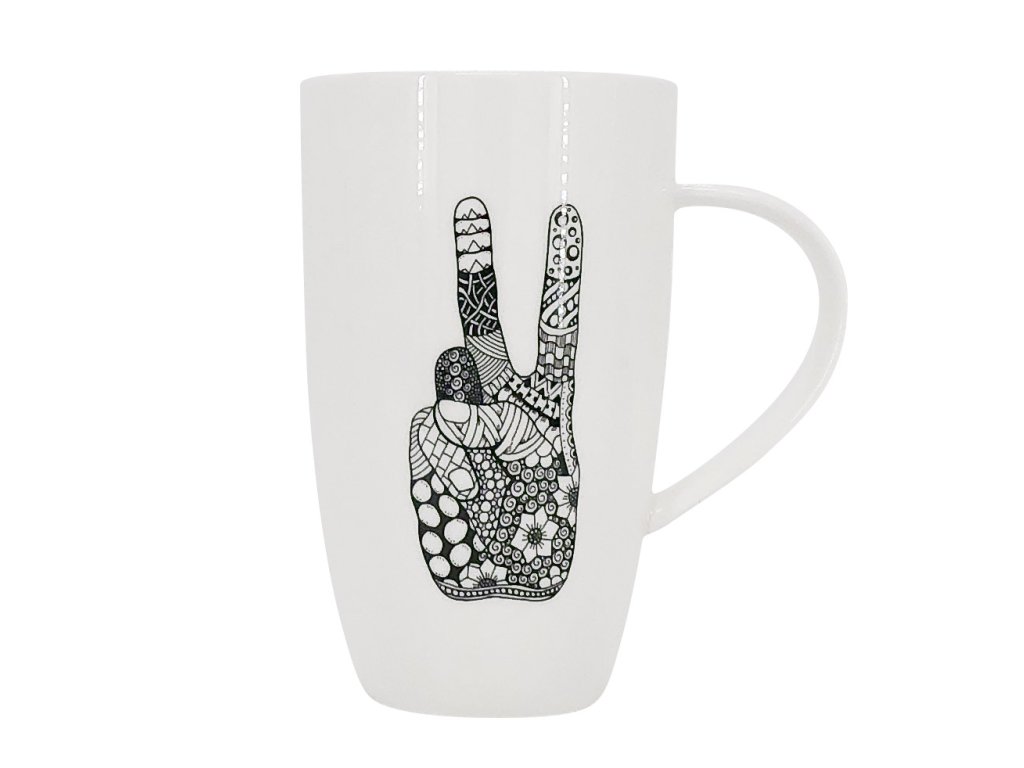 Velký hrnek na čaj o objemu 600 ml s patchworkovým nápisem PEACE od špičkové české značky by inspire.