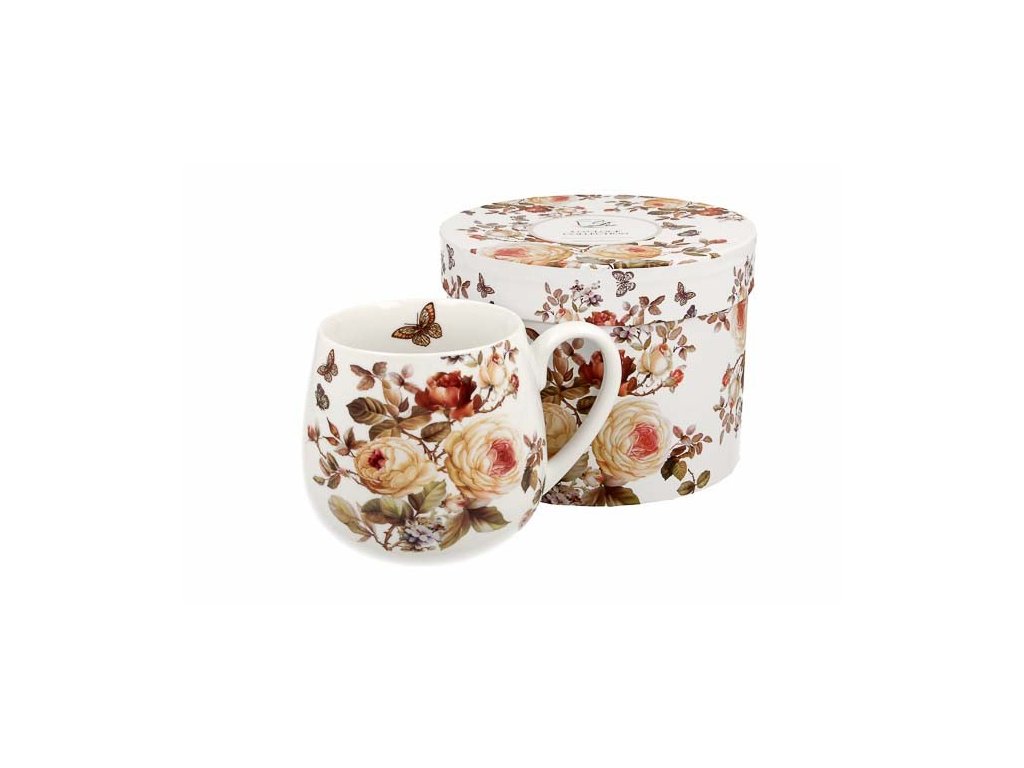 Hrneček je podekorován motivem růží v pastelových barvách.