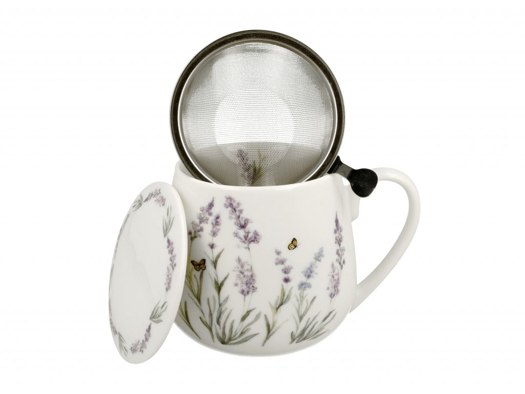 Baculatý hrnek PROVANCE se sítkem a víčkem o objemu 430 ml s krásným lučních květin a ptáčka udělá radost každému milovníku bylinných a sypaných čajů.