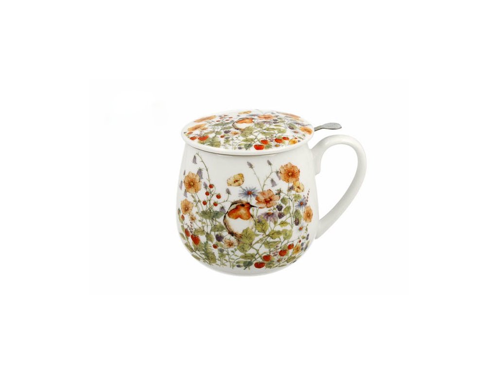Baculatý hrnek WILD BIRDS se sítkem a víčkem o objemu 430 ml s krásným lučních květin a ptáčka udělá radost každému milovníku bylinných a sypaných čajů.