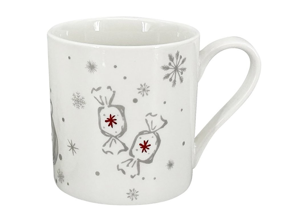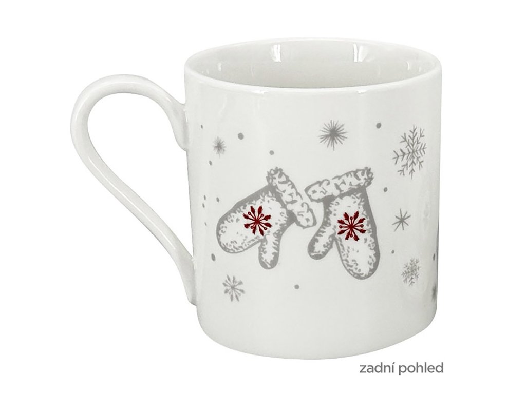 Bílý hrnek na čaj, kávu, kakao, svařák nebo punč 350 ml s vánočním motivem z kolekce porcelánu KOLEDA. Tento typ hrnků je velmi oblíbený kvůli svému tvaru a stabilnosti. A díky kvalitě porcelánu, ze kterého je vyroben, je nepropustný a můžete ho používat v myčce i mikrovlnné troubě.