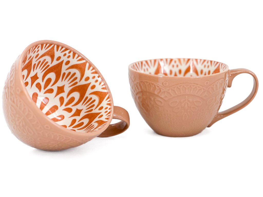 STORY Keramický hrnek 350 ml - set 2 ks starorůžová s ornamenty