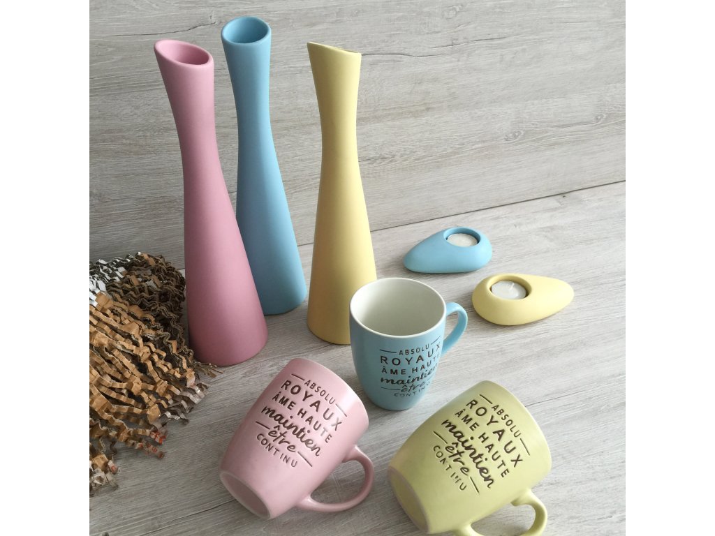 Keramické vázy X si můžete vybrat ve velikostech 7,5x25 cm, 8x30 cm a 10x35 cm a v barvách hnědé, bílé, žluté, oranžové, růžové, fialové, modré, zelené, a černé.