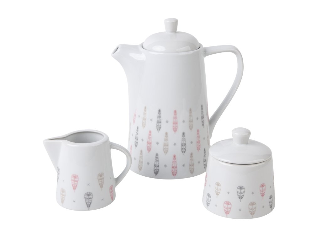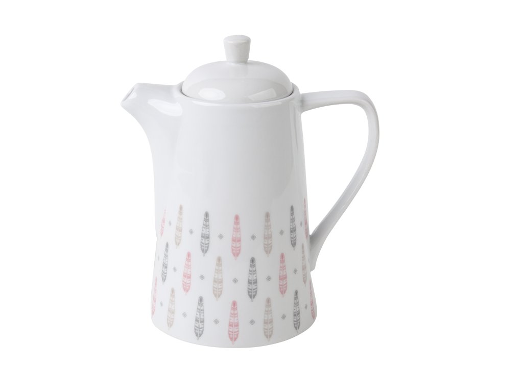 Porcelánová kávová konvice o objemu 1 l v bílé barvě s veselým motivem pírek z kolekce porcelánu PÍRKA.