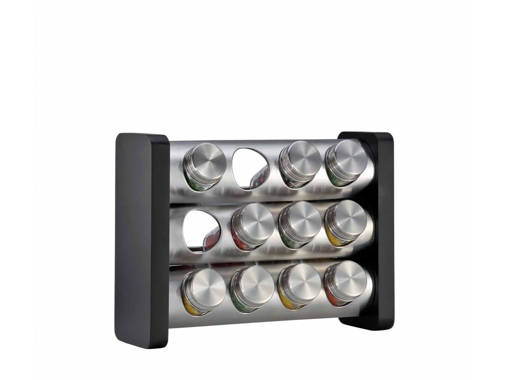 Hranatý stojan na kořenky je dodáván s 12 sklenicemi, které čekají na vaše naplnění a označení přiloženými nálepkami. Stojan můžete jak postavit tak i zavěsit na zeď. Jeho elegantní design s nerezem a dřevem se hodí do každé kuchyně.