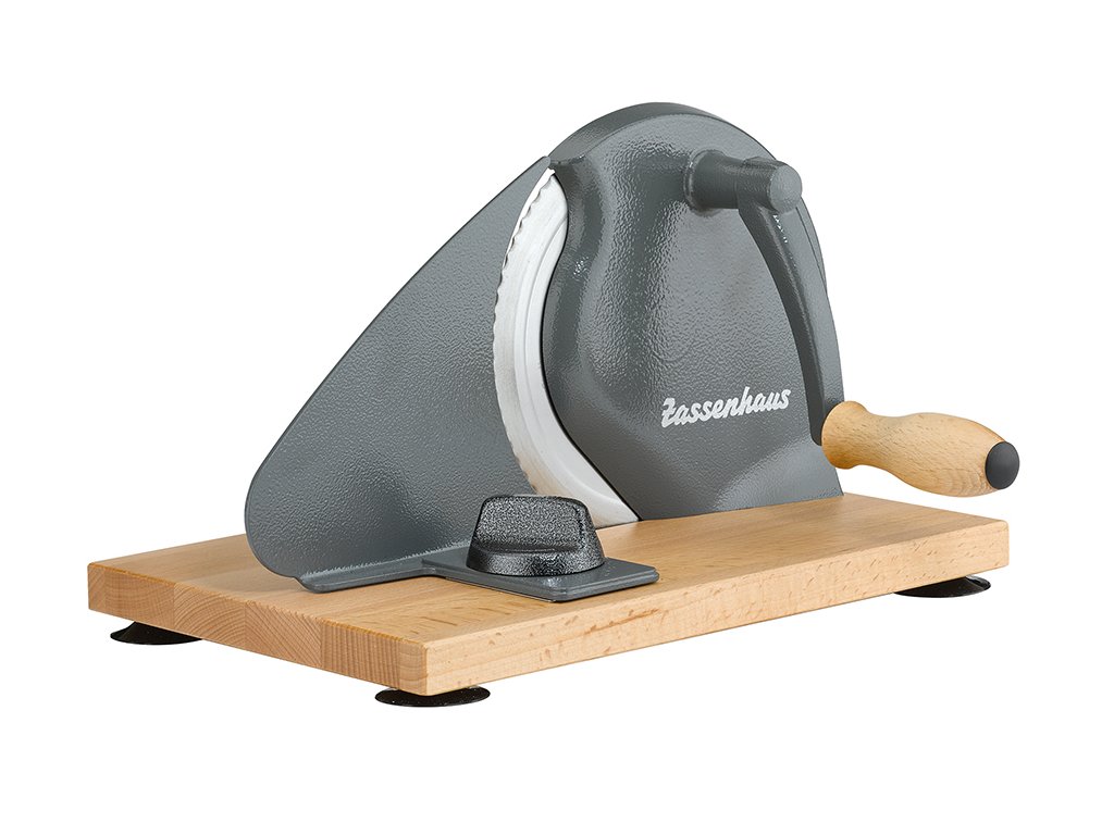 Kráječ chleba CLASSIC od firmy Zassenhaus řeže křupavý bochník přesně podle vašich představ. A v požadované výši. Extra ostrý kulatý nůž se speciálním vlněním je vyroben v Solingenu. Funguje přesně a rychle. Tloušťka řezu od 1 do 18 mm je plynule nastavitelná na regulátoru. Hladká klika se hodí dobře do ruky a je otočena ve směru hodinových ručiček. Čtyři gumové nožičky zajišťují optimální přilnavost a zajišťují bezpečnou práci. Stroj z kolekce Retro je udržitelný ve dvojím smyslu. Funguje bez elektřiny, řezáním chleba podle potřeby se vyhnete vyhazování.