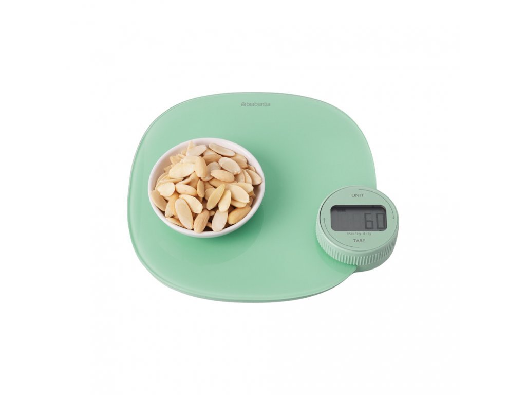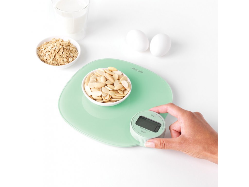 TASTY+ Moderní digitální kuchyňská váha ve světle šedé barvě od špičkové holandské značky Brabantia, vám zváží suroviny od 1g až 5000g.