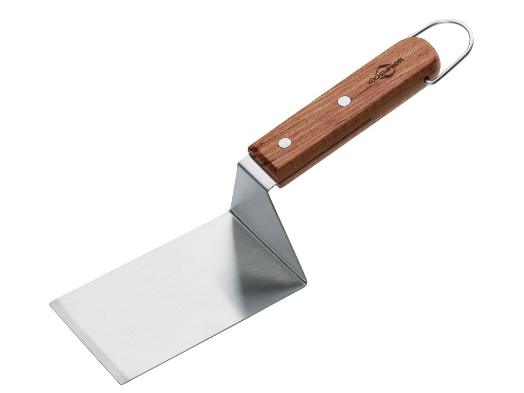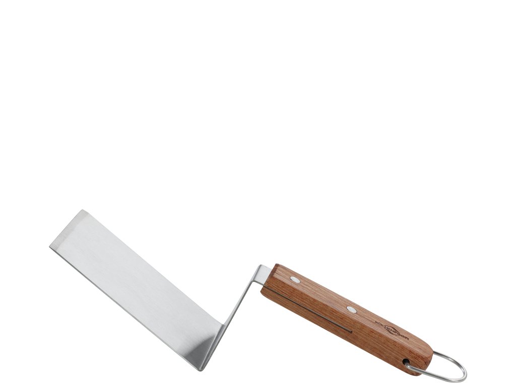 BBQ TEXAS Zkosená obracečka na obracení masa, zeleniny, ryb i hamburgerů s praktickým závěsným očkem. Je vyrobena z nerezové oceli a rukojeť je z palisandrového dřeva. Délka 24 cm. Užitná obracecí plocha 12x7 cm.
