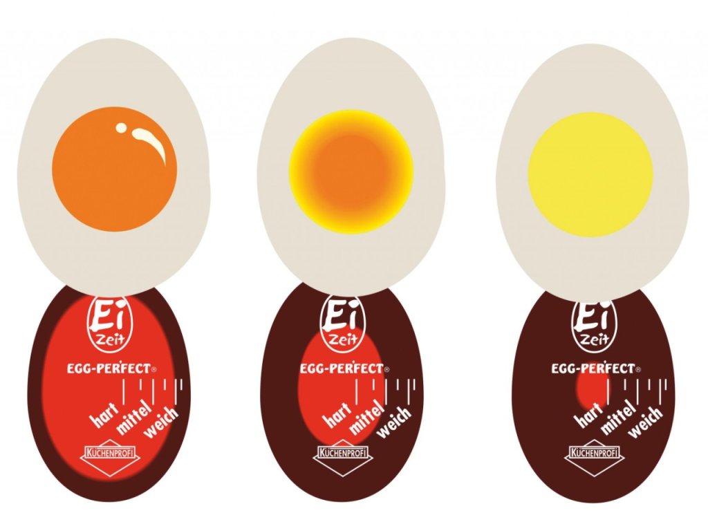 Minutník vložte spolu vajíčky do kastrolu s vodou a vařte spolu. Černé zbarvení minutky indikuje, jak jsou vajíčka uvařená. Vynikající pomocník.