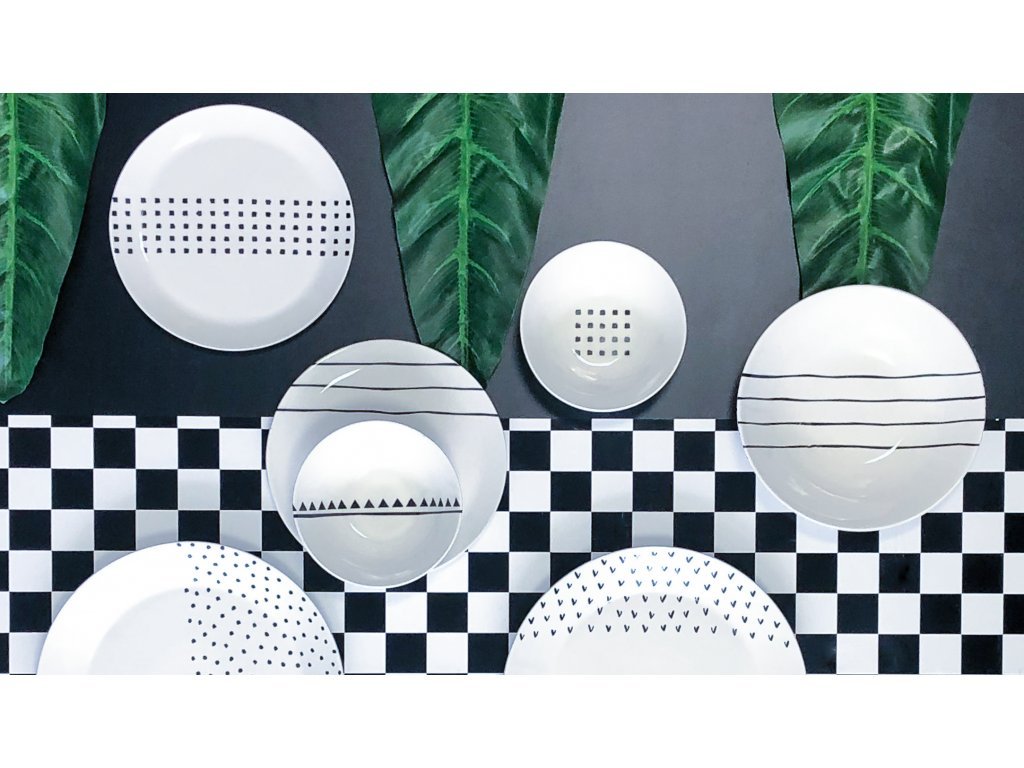 Výrazným designovým prvkem této kolekce jsou minimalistické a jemné, černé vzory na bílém porcelánu - kolekci porcelánu NOBLE.