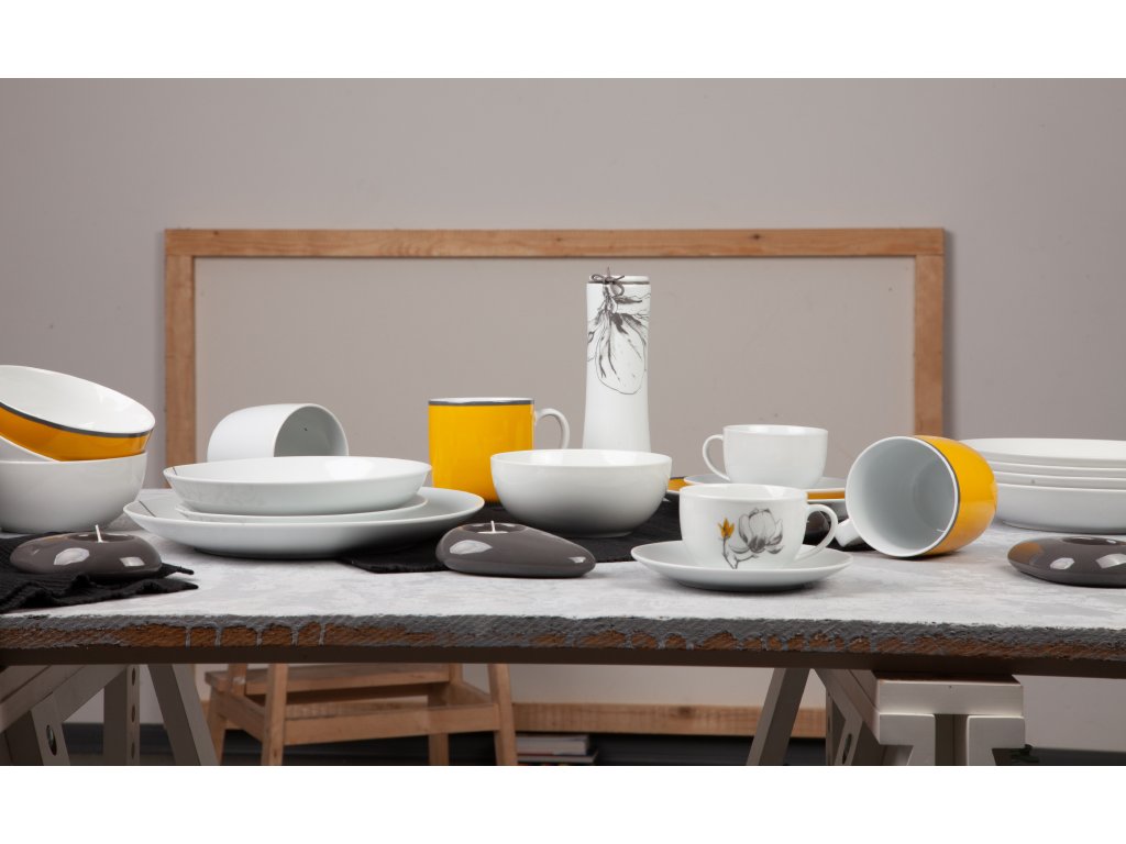 Kolekce porcelánu TWIG přináší nádherný dekor magnolie ve žluto-šedém provedení na bílém porcelánu. Magnolie, nebo-li šácholan je okrasná dřevina, hojně pěstovaná a oblíbená i u nás.