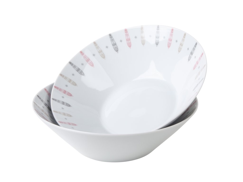 Porcelánová mísa na bramborový salát nebo brambůrky, průměr 24 cm v bílé barvě s veselým motivem pírek z kolekce porcelánu PÍRKA - souprava 2 ks.