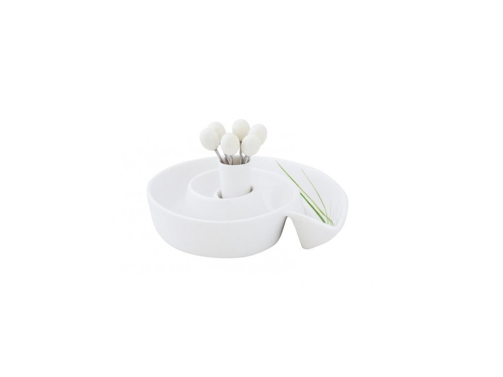 Porcelánová miska na olivy Šnek s napichovátky a stojánkem 21 cm - GRASS By inspire