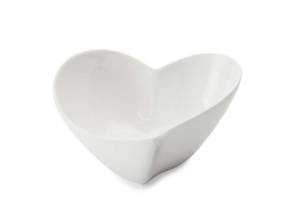 Porcelánová miska na oříšky, dipy bílé barvy o průměru 11 cm ve tvaru srdíčka z kolekce WHITE BASICS od renomované australské značky Maxwell and Williams.