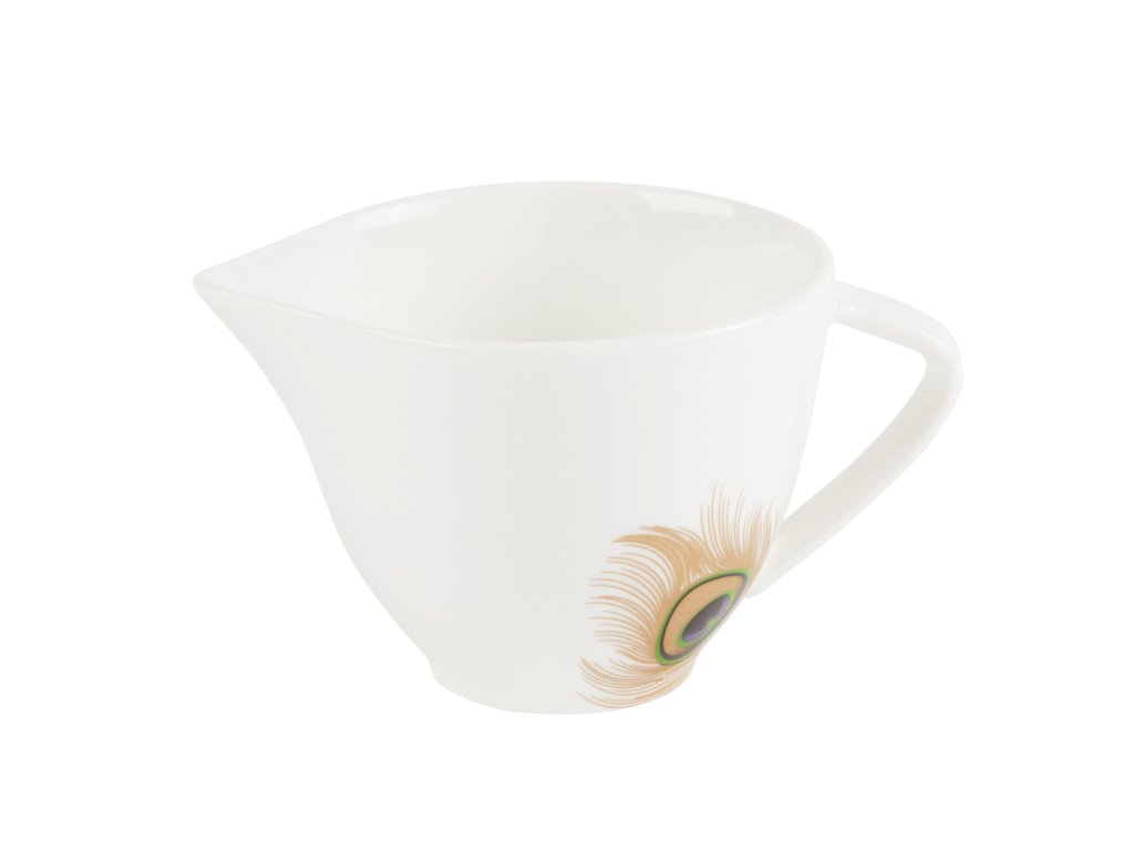 Hlavním designovým prvkem kolekce PAVONE je paví pero v metalické zlaté barvě s nádherným vybarvením pavího pera na bílém porcelánu - kolekci porcelánu NOBLE.