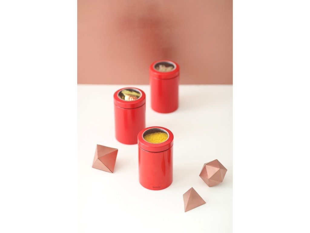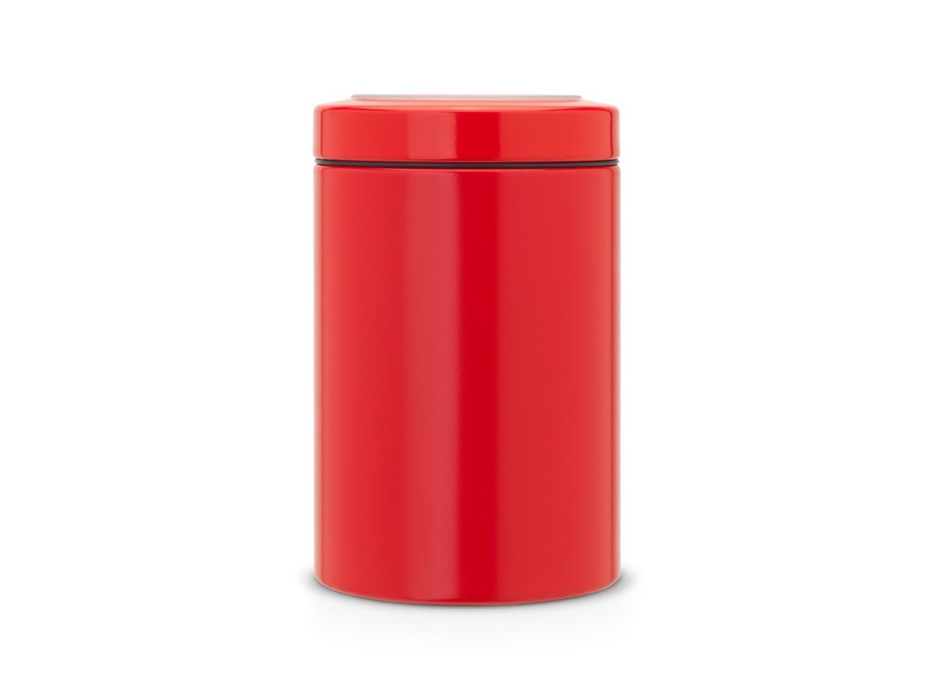 Pokud hledáte nádobu k uchovávání kávy, čaje, cukru a ostatních ingrediencí, je tu právě pro vás 1,4 litrová dóza v zářivě červené barvě od holandské značky Brabantia.Jen v této dóze zůstane vše díky speciálnímu „klikacímu“ uzávěru stále čerstvé. Díky průhlednému víku je vždy dobře viditelný obsah, proto není potřeba dózu popisovat. Je to funkční a odolné řešení k uchovávání kávy, čaje, těstovin atd. Za jednoduchou údržbu vděčíme hladkému vnitřnímu povrchu. Můžete v ní skladovat například 500 g kávy, 1 kg cukru, čaj a ostatní ingredience. Na výrobu byly použity antikorozní materiály. Vybírat můžete z mnoha barevných provedení.