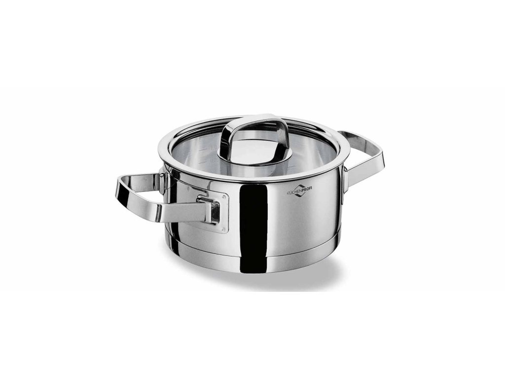 SAN REMO Kvalitní nerezový hrnec vyrobený z nerezové oceli se skleněnou poklicí o průměru 20 cm a objemu 2,5 litru. Kastrol je vhodný pro všechny typy sporáků včetně indukce a má praktickou vnitřní měřící stupnici. Extra silná vícevrstvá základna optimálně rozvádí teplo - zelenina, mleté maso nebo kostky hovězího masa se vaří rychle a rovnoměrně. Víko z bezpečnostního skla pomáhá s energeticky úspornou přípravou a obsah máte vždy na očích. Tepelně izolační rukojeti jsou z nerezu a můžete za ně chytit a nespálíte se.