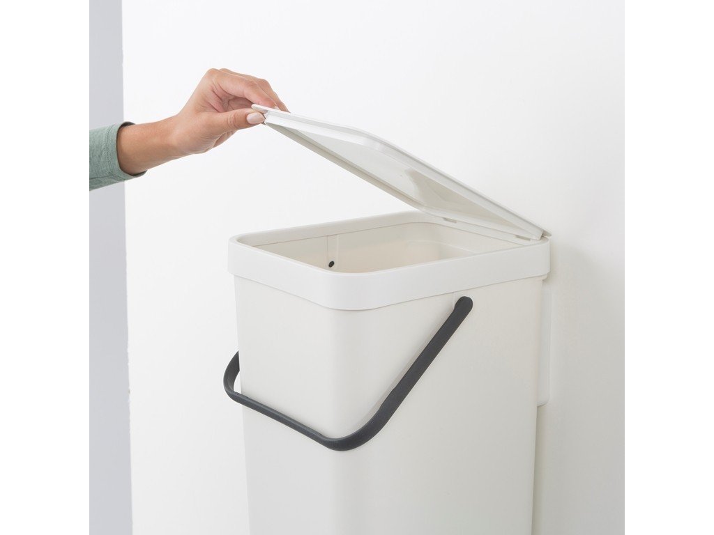 Můžete ho jednoduše připevnit na zeď nebo volně postavit na zem. Jednoduše se s ním manipuluje při vysypávání díky velké rukojeti a chytrému držadlu, které je umístěno zespodu koše. Víko koše dobře drží otevřené a také ho můžete z koše sejmout. Součástí vestavných košů je odolný rám, který je kompatibilní s běžnými korpusy kuchyňských skříněk.