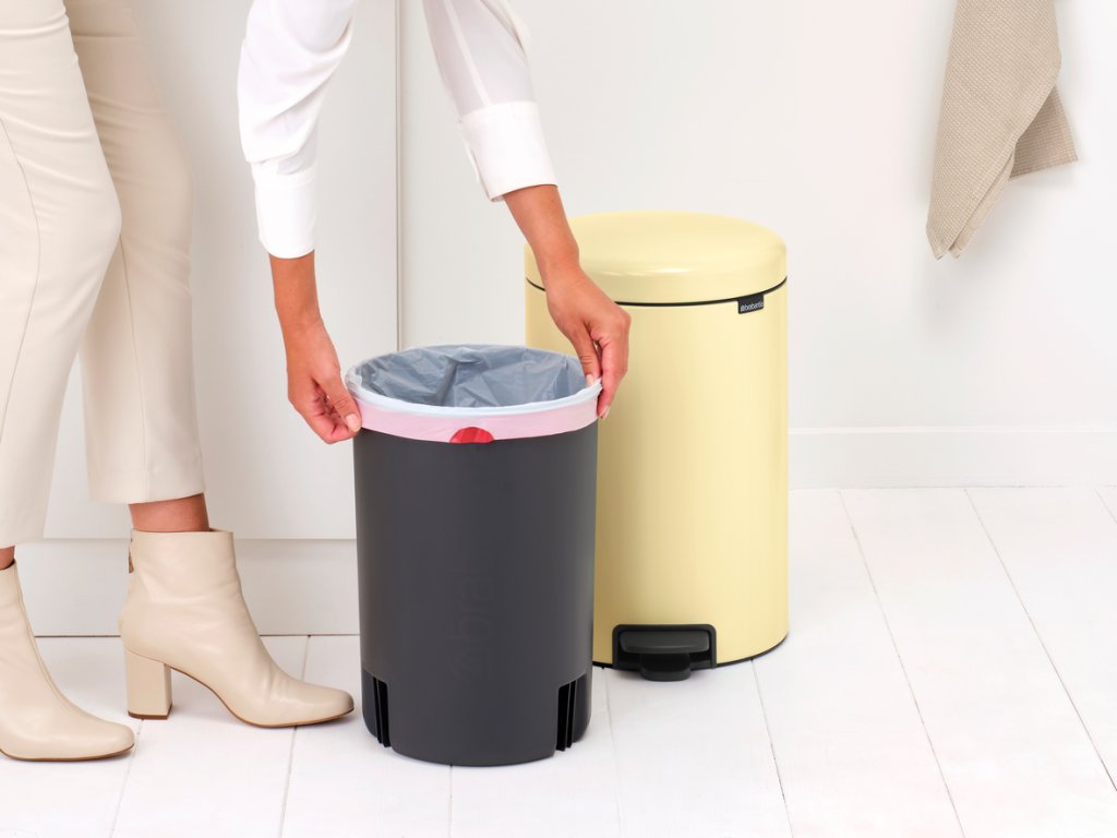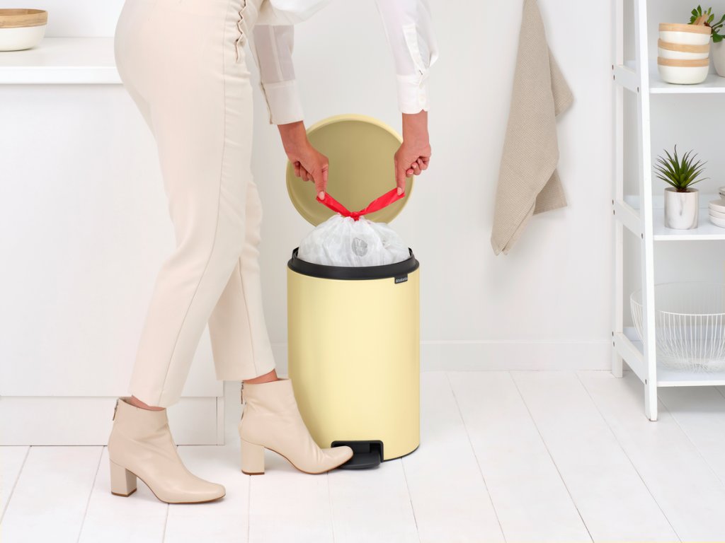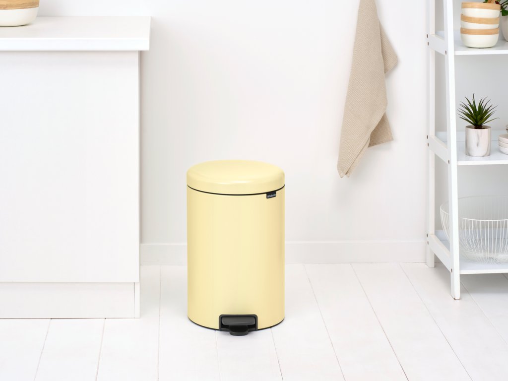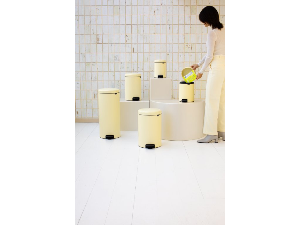 Pedálový koš na odpadky newIcon o objemu 20 l v příjemné jemně žluté barvě od výrobce Brabantia je ideální pro použití v kuchyni, obývacím pokoji, kanceláři nebo hale. Je to nejvíce používaný koš vůbec. Velký otvor zajistí snadnou likvidaci vašeho odpadu bez rozsypání. Je univerzální a velmi snadno se udržuje a čistí.