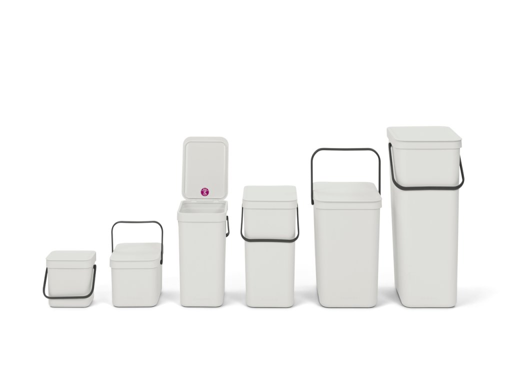 Sort&Go plastové odpadkové koše na tříděný odpad si můžete vybrat v provedení: 3 l, 6 l, 12 l, 16 l, 20 l, 25 l, 40 l a 2x12 l a 2x16 l.
