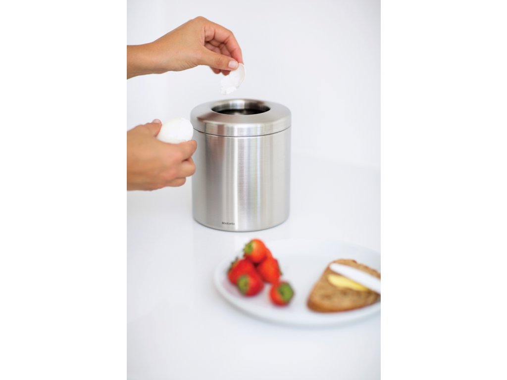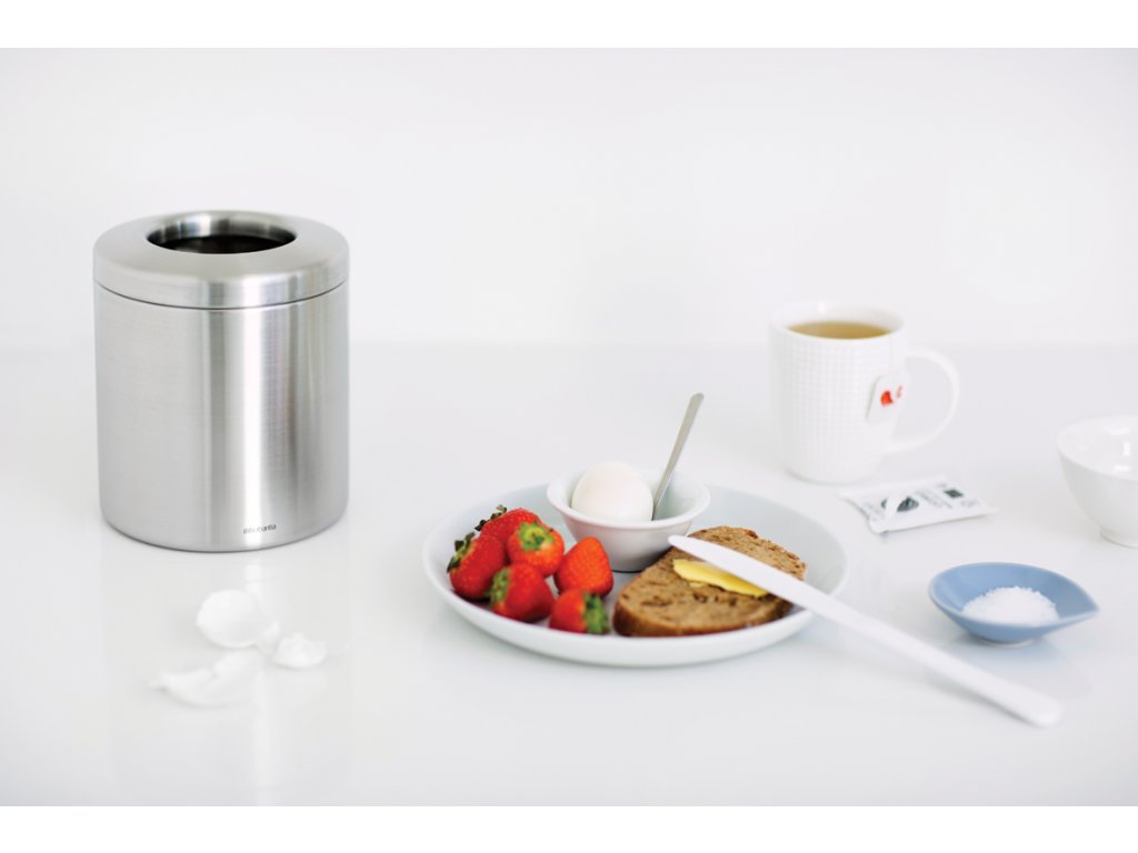 Koš na stůl Brabantia pro použití na doma nebo ve stravovacích zařízeních vás zbaví odpadu hned na místě diskrétně a stylově. Stůl tak bude stále čistý. Koš je ideální k uklízení veškerých zbytků ze stolu jako například použitých kapesníků, sáčků od čaje, obalů od marmelád, másla atd. Můžete ho dát i do myčky nádobí, je vyroben z kvalitní nerezové oceli.