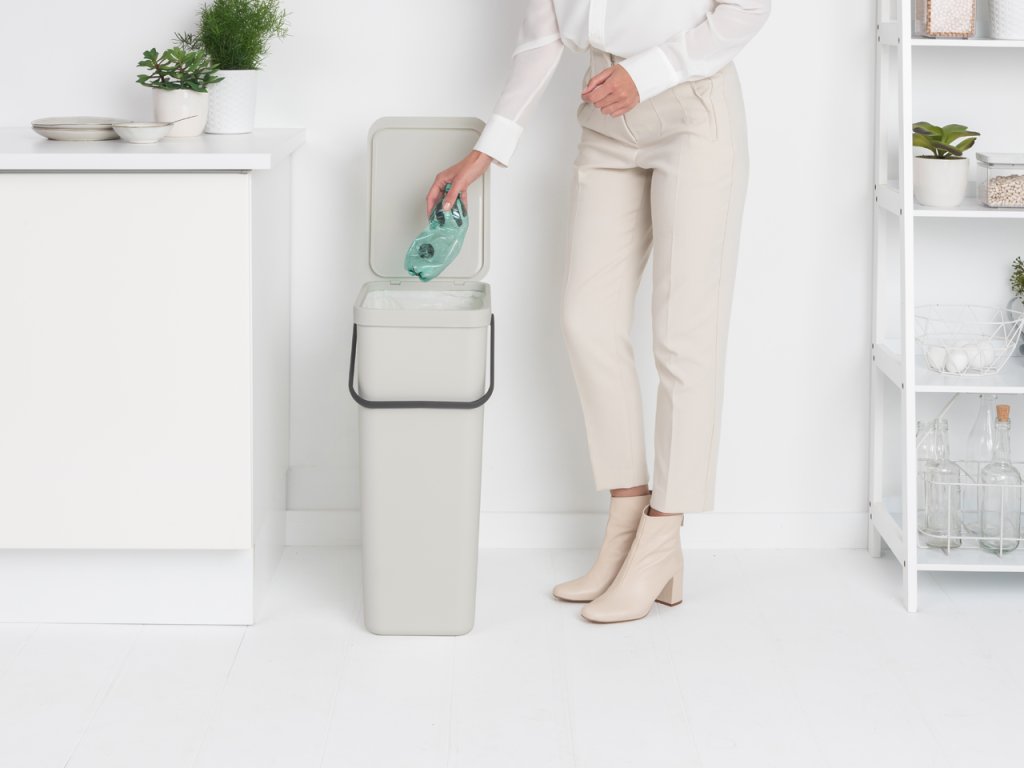 Jednoduchý praktický plastový odpadkový koš na tříděný odpad Sort & Go o objemu 40 l v nadčasové světle šedé barvě využijete nejen doma, ale i v zaměstnání. Je vhodný také do kuchyně na menší bio odpad.