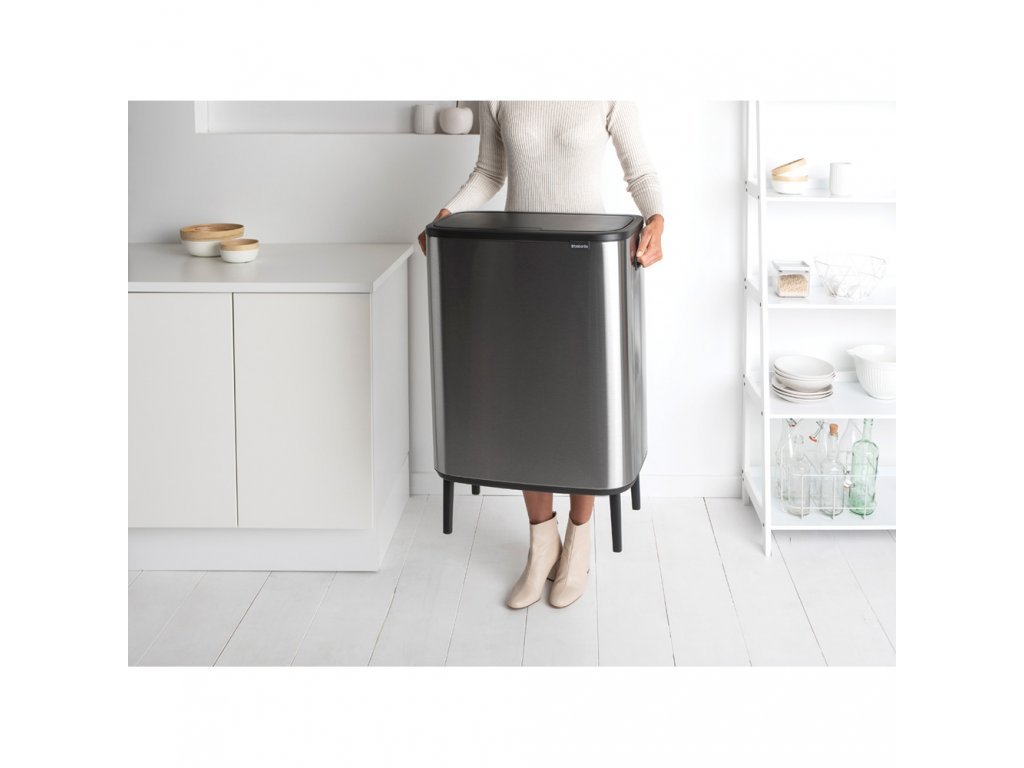 BO TOUCH BIN HI odpadkový koš je dotykový koš na odpadky, s objemem 60 l v krásné matně černé barvě, který je dostatečně velký pro vaši domácnost, kancelář i halu. Jeho povrchová úprava FPP minimalizuje otisky rukou.