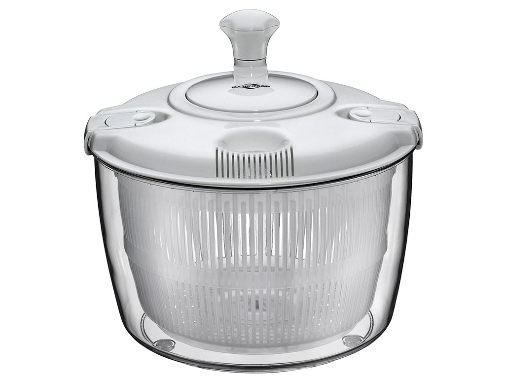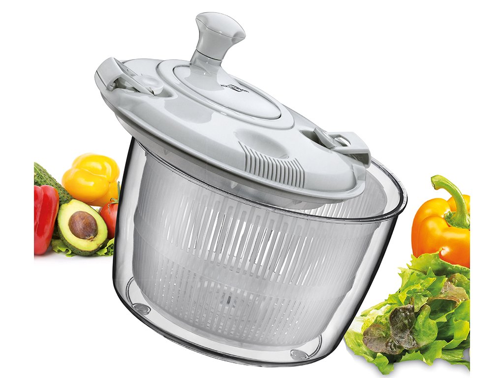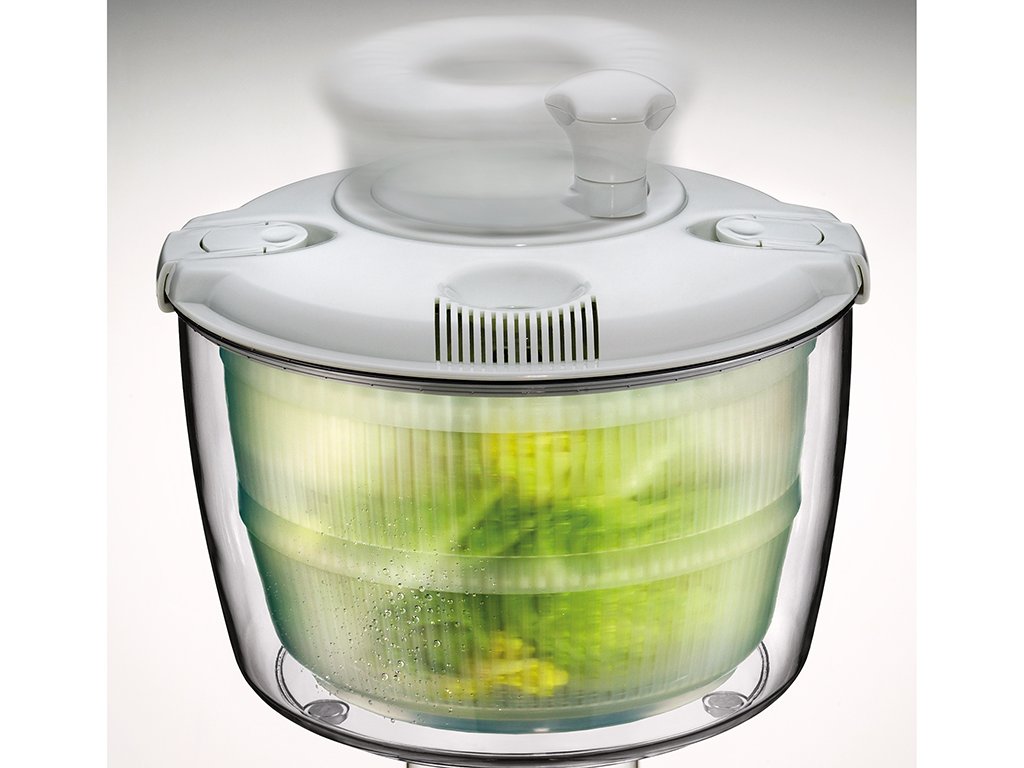 Odstředivka/ždímačka na salát GRANDE s víkem v bílé barvě rychle a efektivně vysuší vaši zeleninu, bylinky i ovoce.
