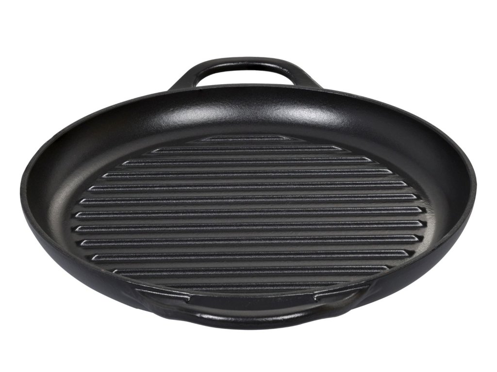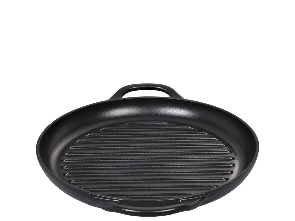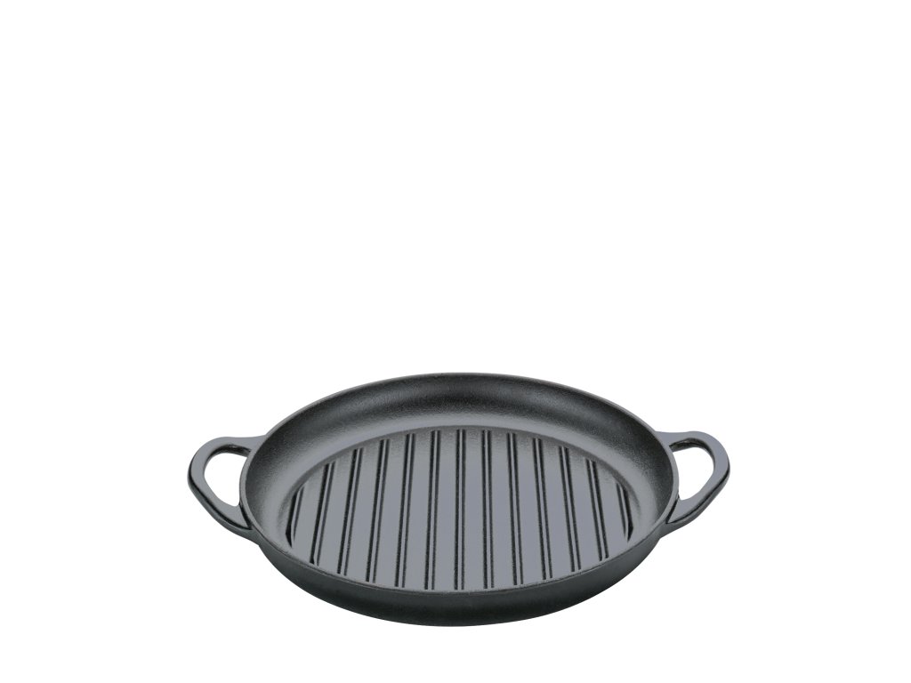 PROVENCE Kulatá litinová pánev na grilování s vystouplým žebrováním v černé barvě o průměru 30 cm z kolekce litinového nádobí PROVENCE od německé značky Küchenprofi.