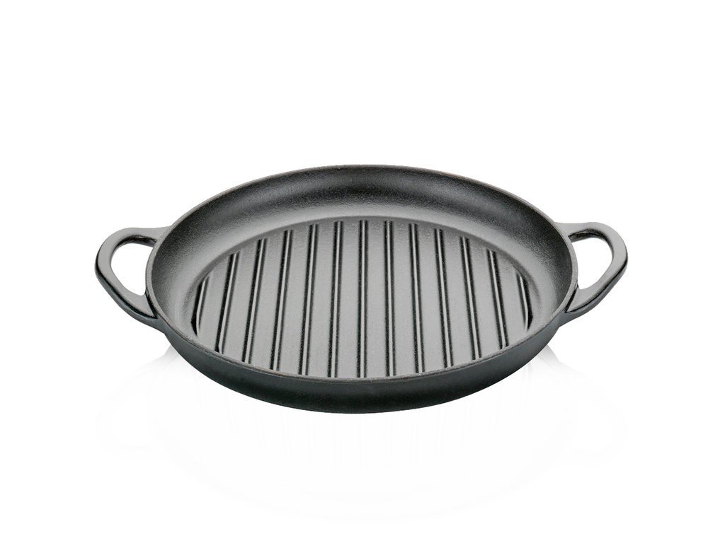 Litinovou pánev na grilování s vystouplým žebrováním můžete používat na všech typech vařičů včetně indukční desky a halogenového vařiče. Má krásný design a bude ozdobou při servírování připravovaného pokrmu přímo na vašem stole. Odolává trvale vysokým teplotám bez ztráty kvality. Můžete ji také mýt v myčce nádobí.
