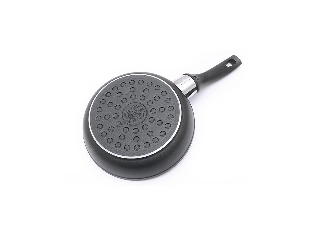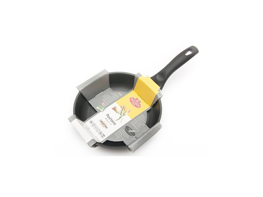 Pánev na smažení z kolekce POSITANO s jedinečným nepřilnavým povrchem KERAVIS o průměru 28 cm od italského výrobce Ballarini. Kvalitní nepřilnavé pánve Positano jsou ideálním společníkem při smažení vajec, restování zeleniny, masa, ryb, bramboráků nebo palačinek. Pánev z kolekce Positano je hliníková (má dvojité ocelovo hliníkové dno), kdy se hliníkový plát pod vysokým tlakem formuje do požadovaného tvaru a je tvrzen tvrzeným vrstveným nepřilnavým povrchem KERAVIS, jenž je vhodný pro zdravé vaření s malým množstvím tuku či bez něj. Použitý nepřilnavý povrch odolává vysokým teplotám – při vaření bez tekutin až do 250 °C. Skládá se ze 3 vrstev posílených o keramické částice pro zvláště intenzivní použití. Neobsahuje nikl ani těžké kovy. Ergonomická rukojeť byla vyrobena z odolného černého plastu s kovovou ochranou proti plamenům. Během smažení se nezahřívá. Díky použití kvalitního materiálu snese zapékání v troubě až při teplotách 160 °C. Italské pánve Ballarini nejsou jen designovým skvostem do vaší kuchyně, ale díky Italské preciznosti jsou také vysoce kvalitní. Nádobí je Ideální pro alergiky, jelikož neobsahuje nikl ani těžké kovy, bez PFOA