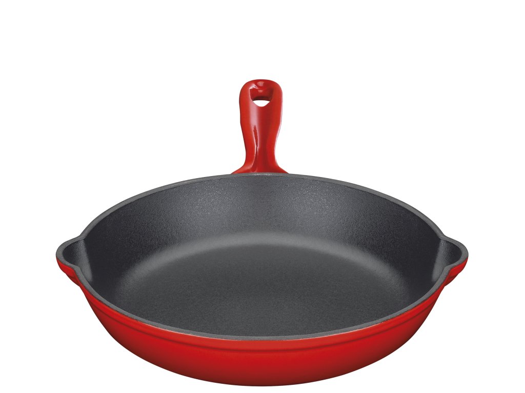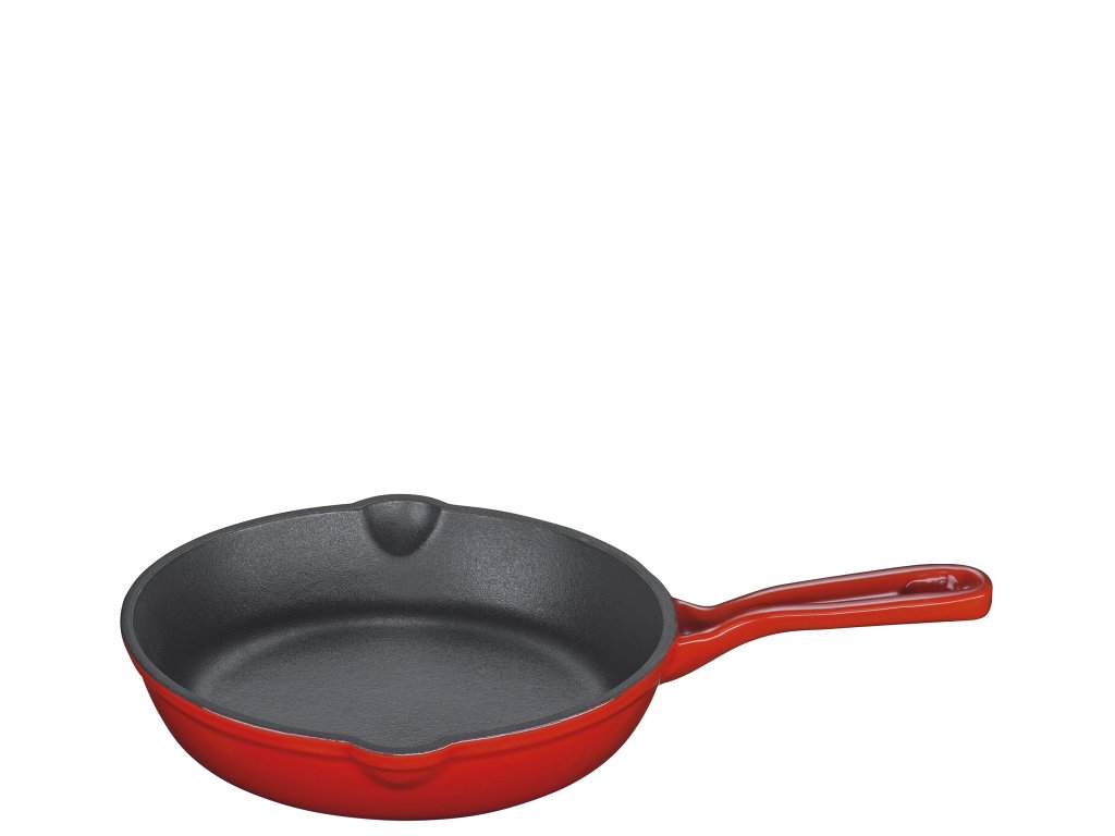 PROVENCE Litinová pánev na smažení i servírování v červené barvě o průměru 16 cm a výšce 4 cm z kolekce litinového nádobí PROVENCE od německé značky Küchenprofi.